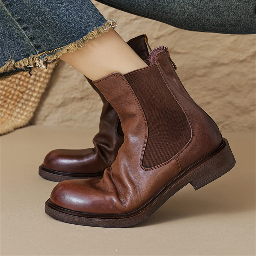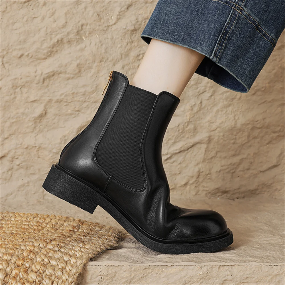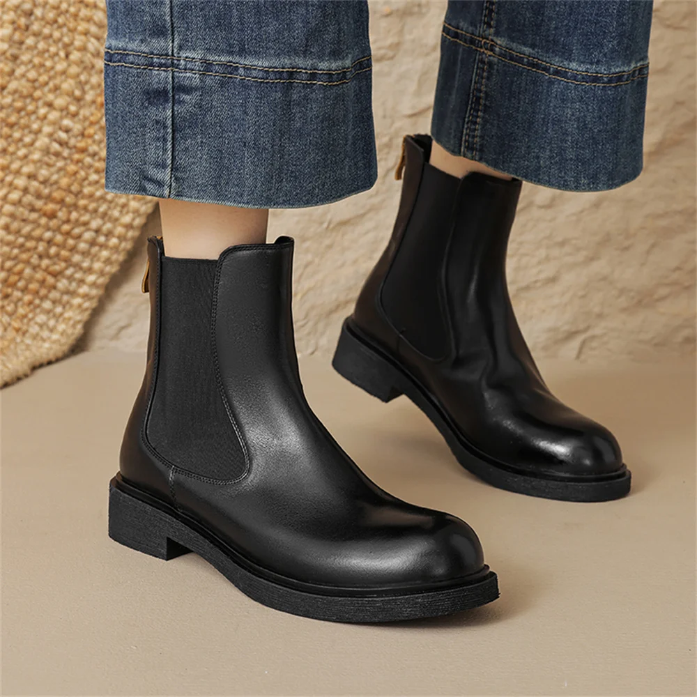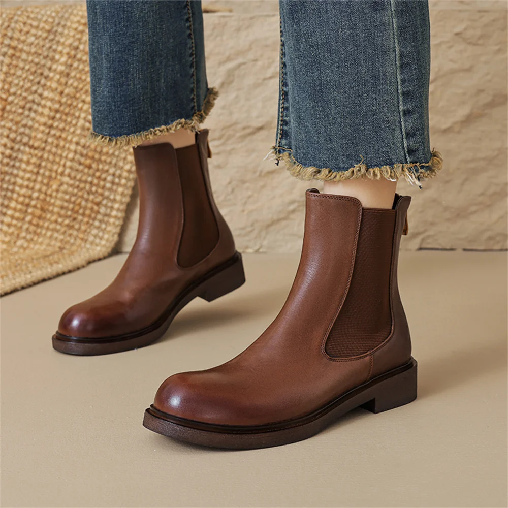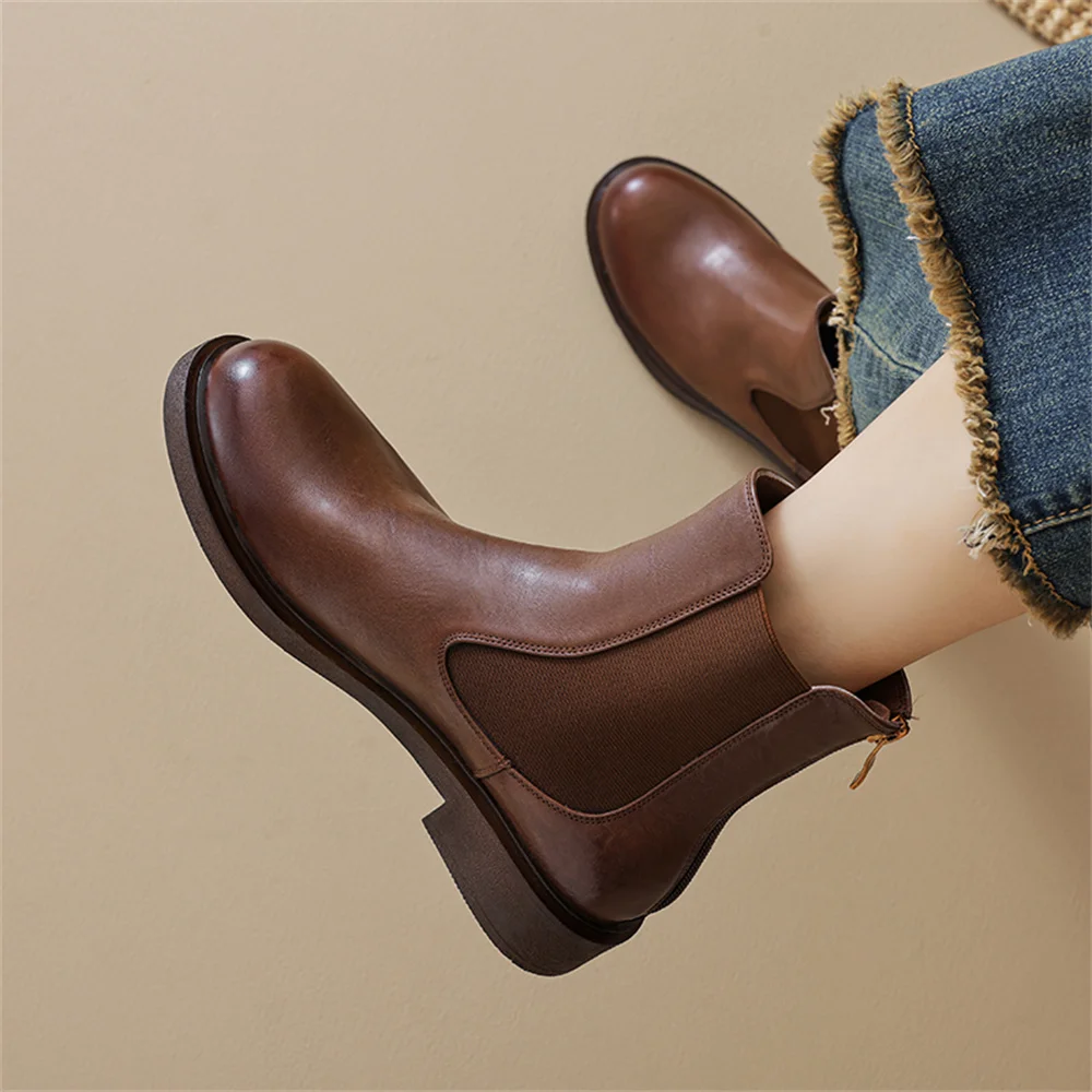 Discover the Elegance of Genuine Leather Ankle Boots with Low Heels