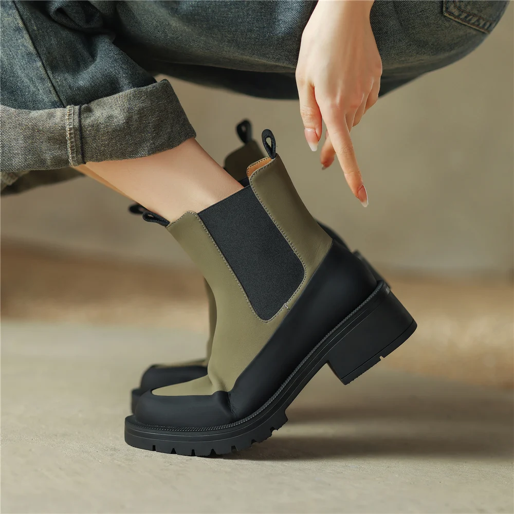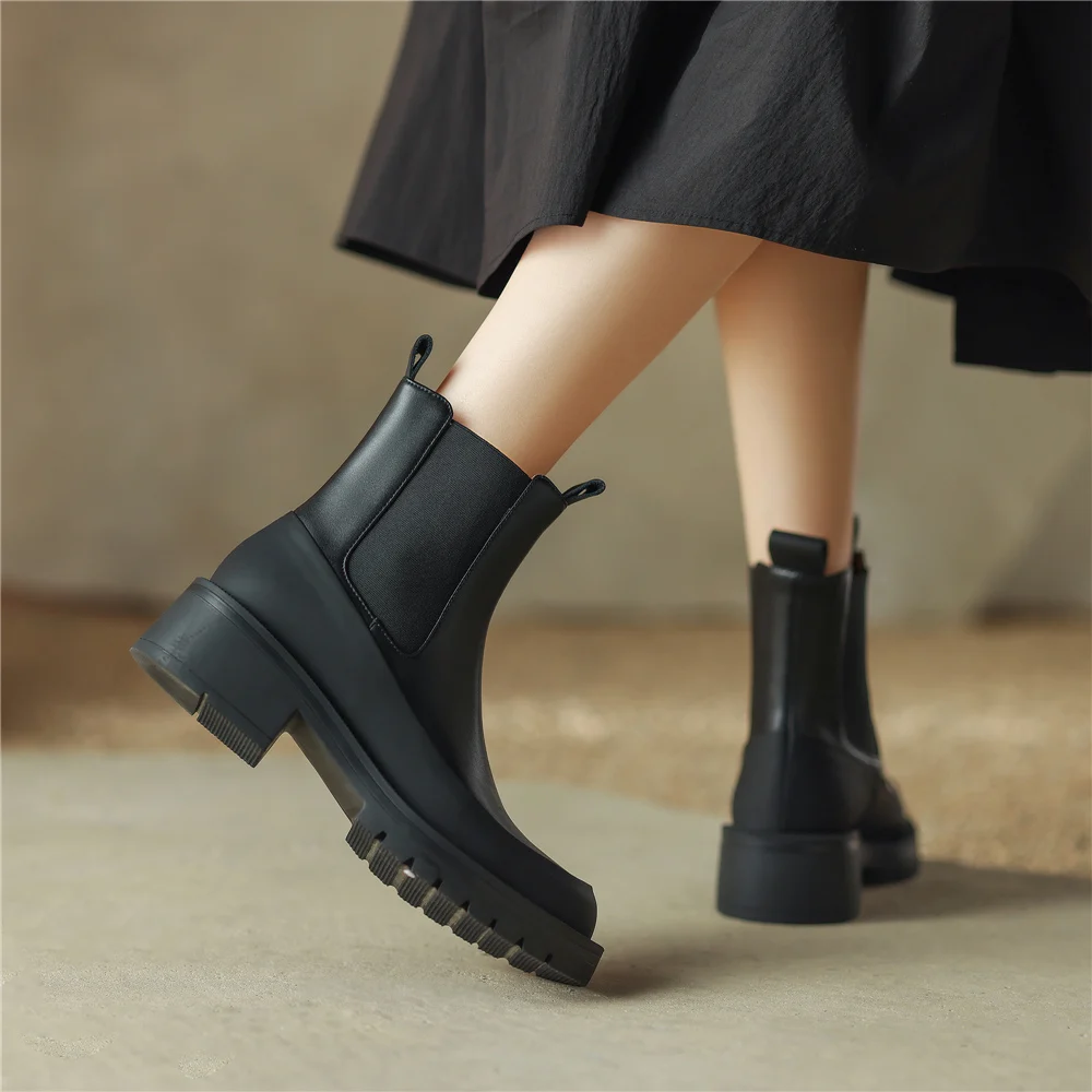 Step into style and comfort with our Genuine Leather Ankle Boots featuring thick heels. Designed for the modern individual, these boots blend timeless aesthetics with practicality, making them a must-have in your footwear collection. Crafted with high-quality materials, they provide not only a fashionable look but also the durability you need for daily wear.