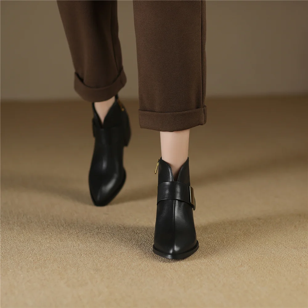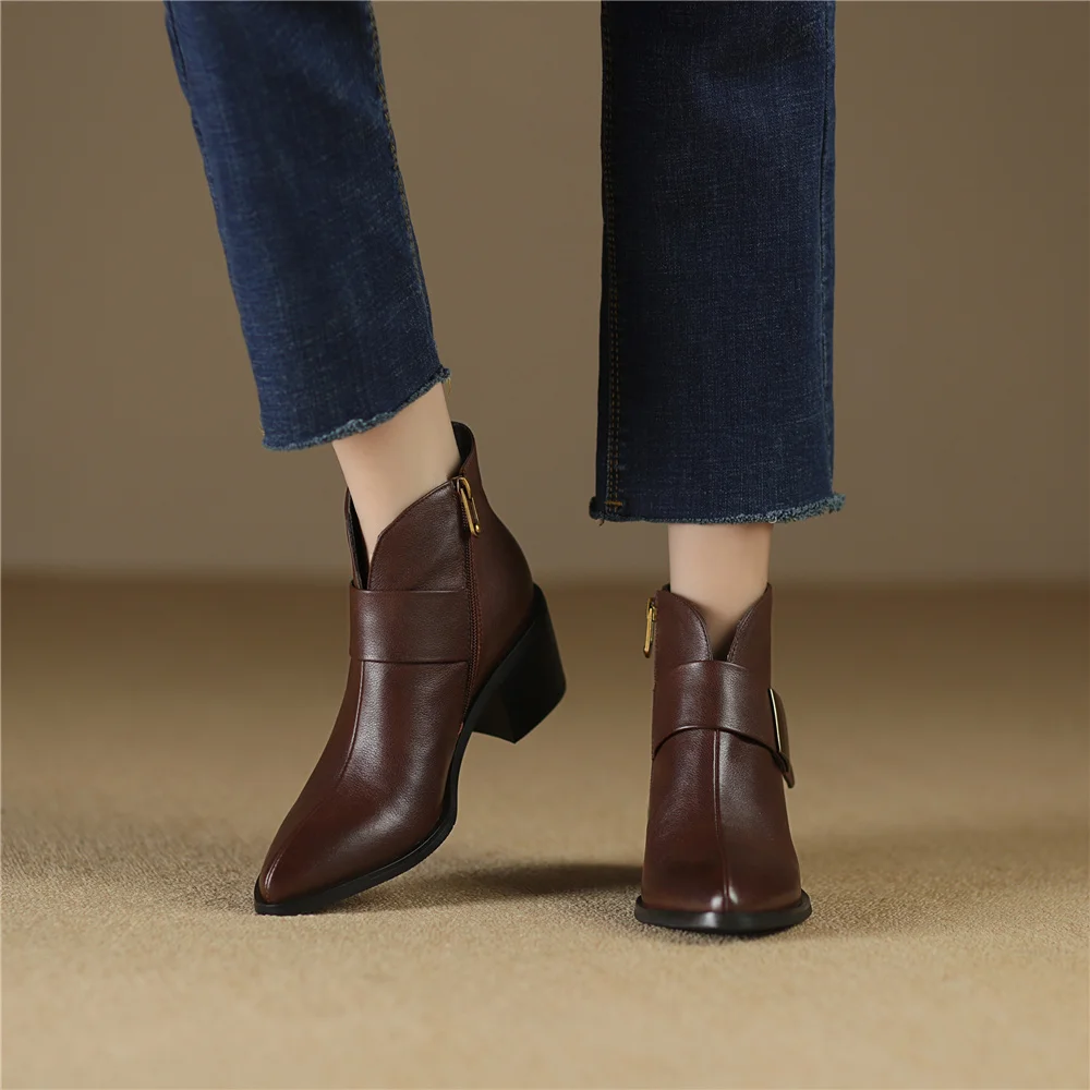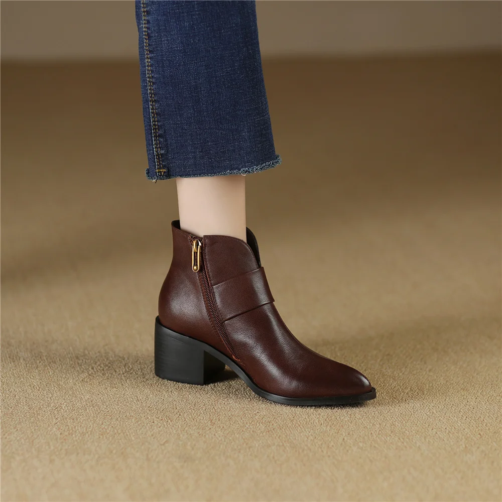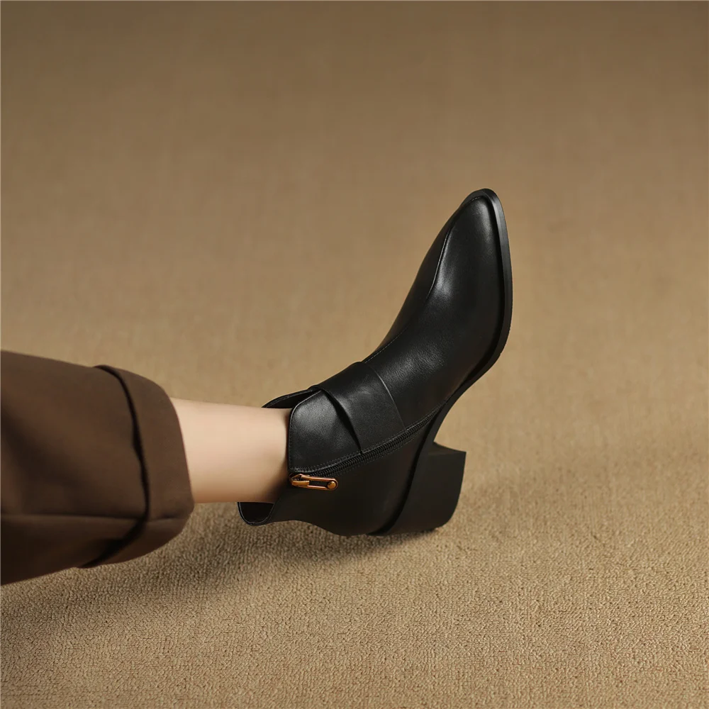 Elevate your footwear collection with our exquisite Genuine Leather Ankle Boots, designed for comfort, style, and versatility. Featuring a chic side zipper and a sturdy thick heel, these boots are perfect for any occasion, whether you’re heading to the office or enjoying a night out. Crafted with premium cow leather, they promise durability and a sophisticated look that pairs effortlessly with any outfit.