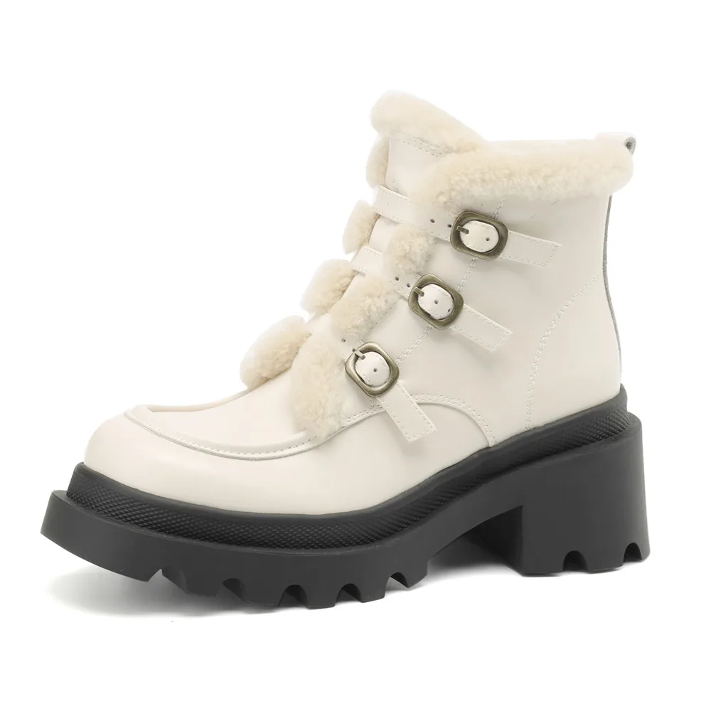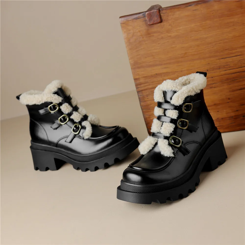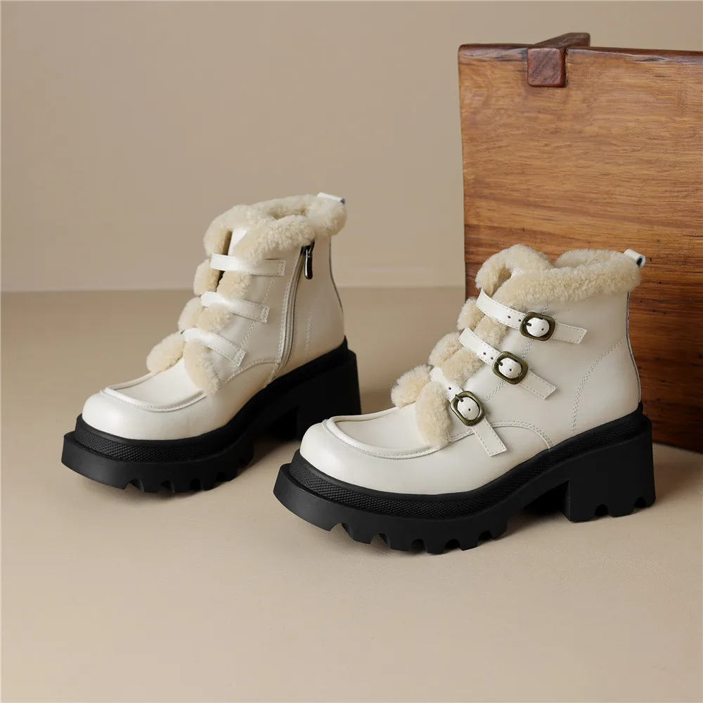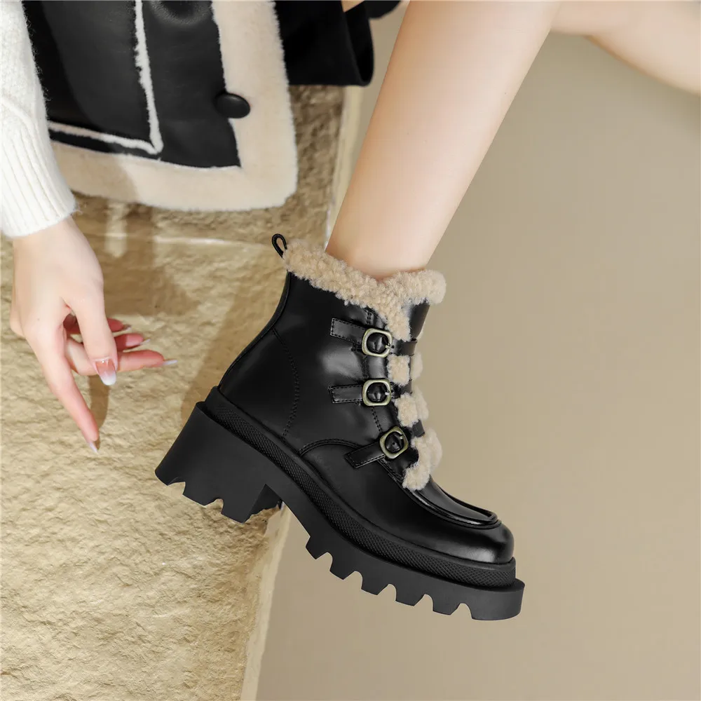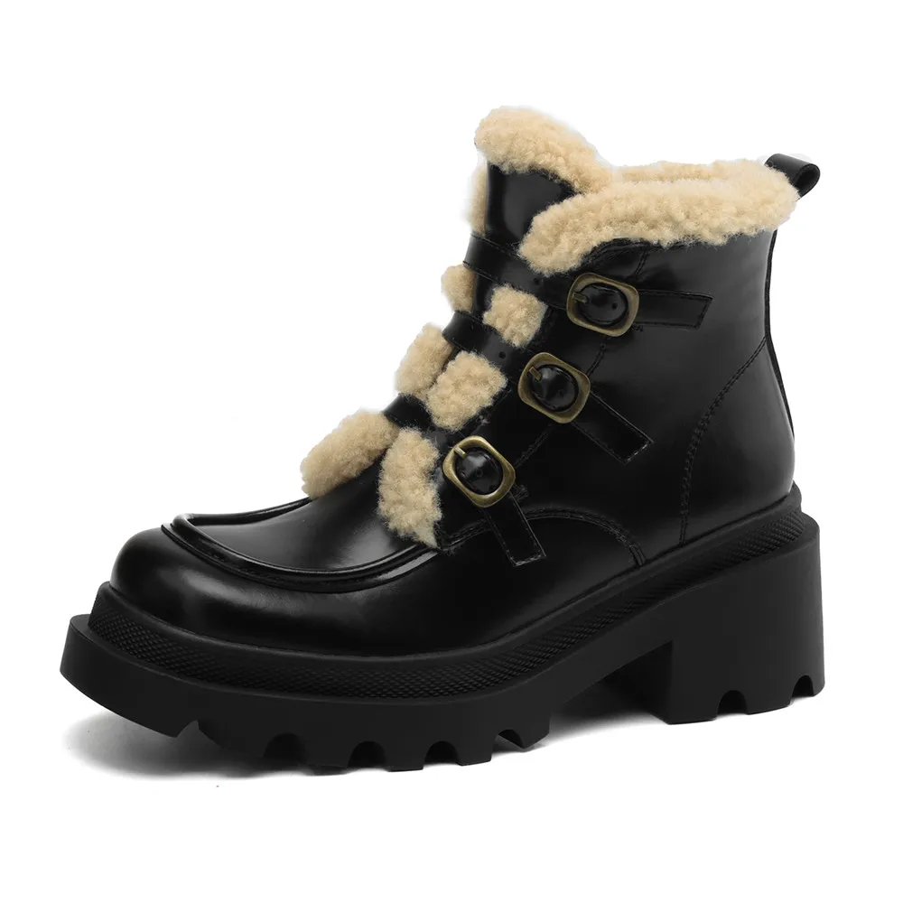 Genuine Leather Ankle Boots with Wool Blend Lining