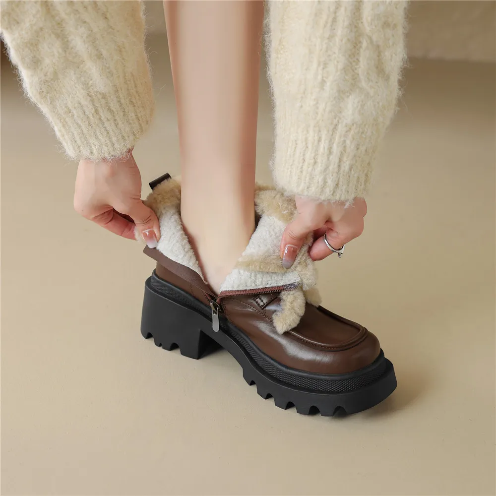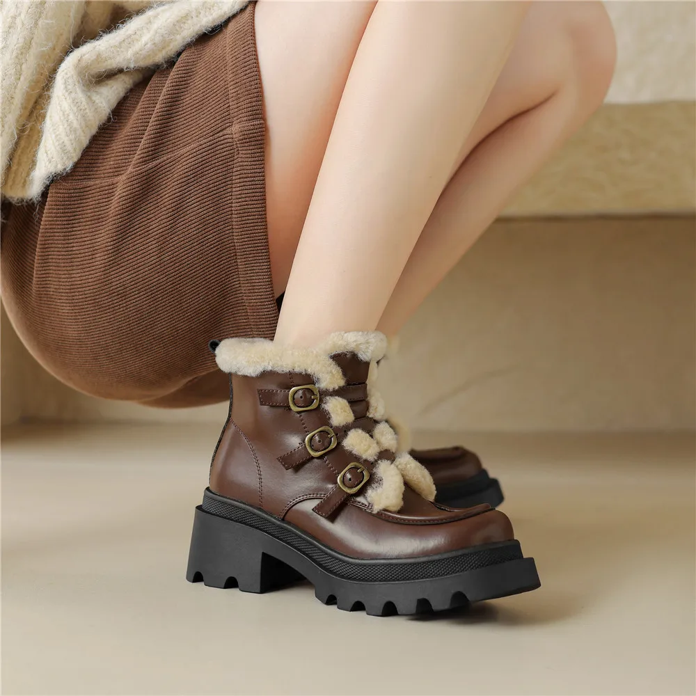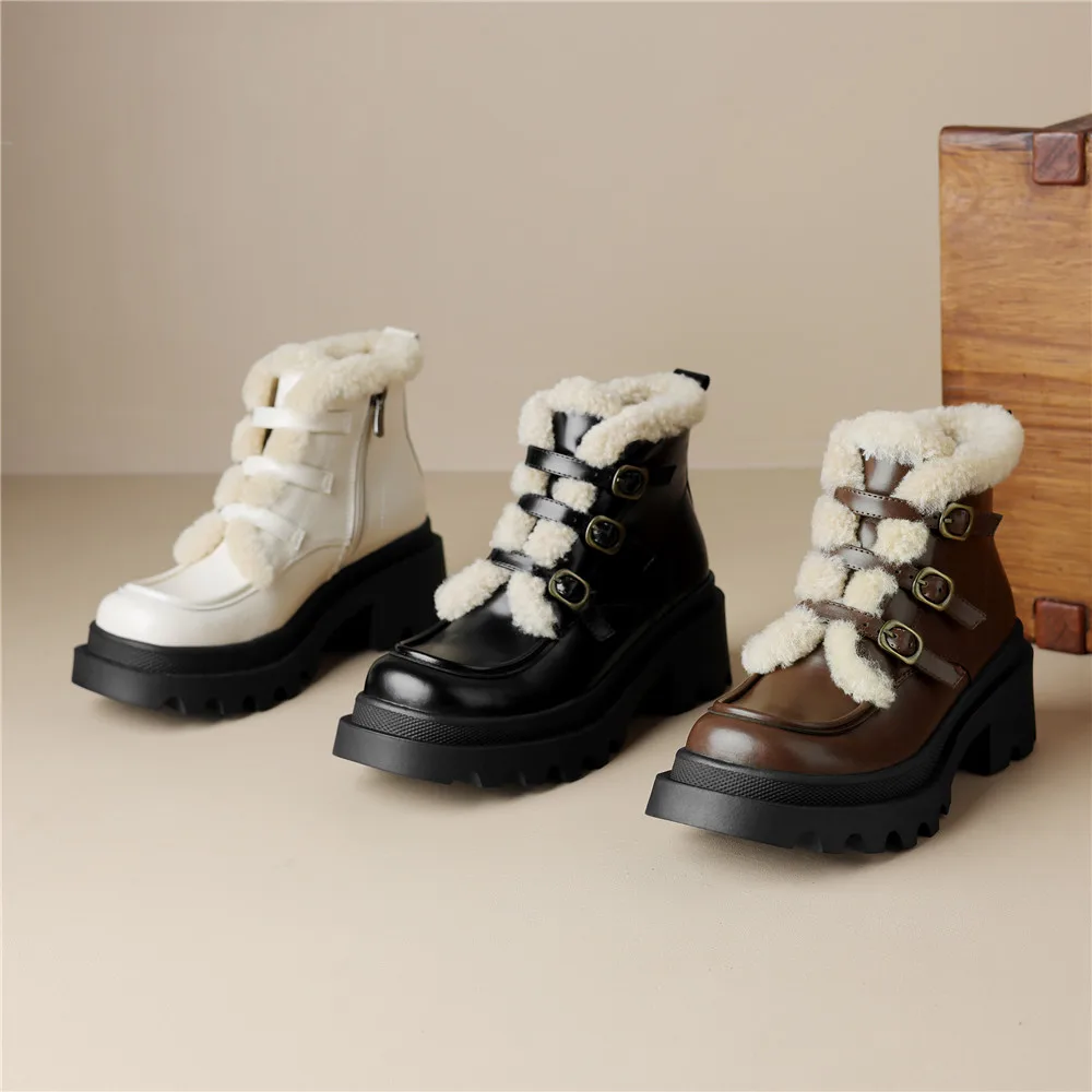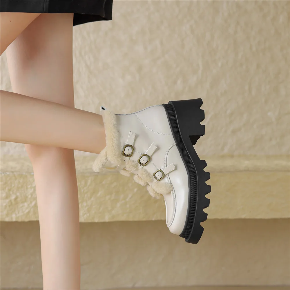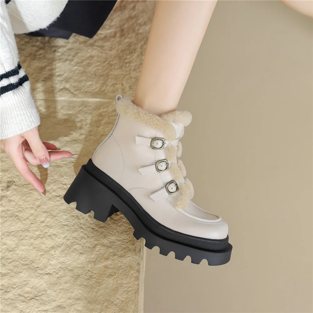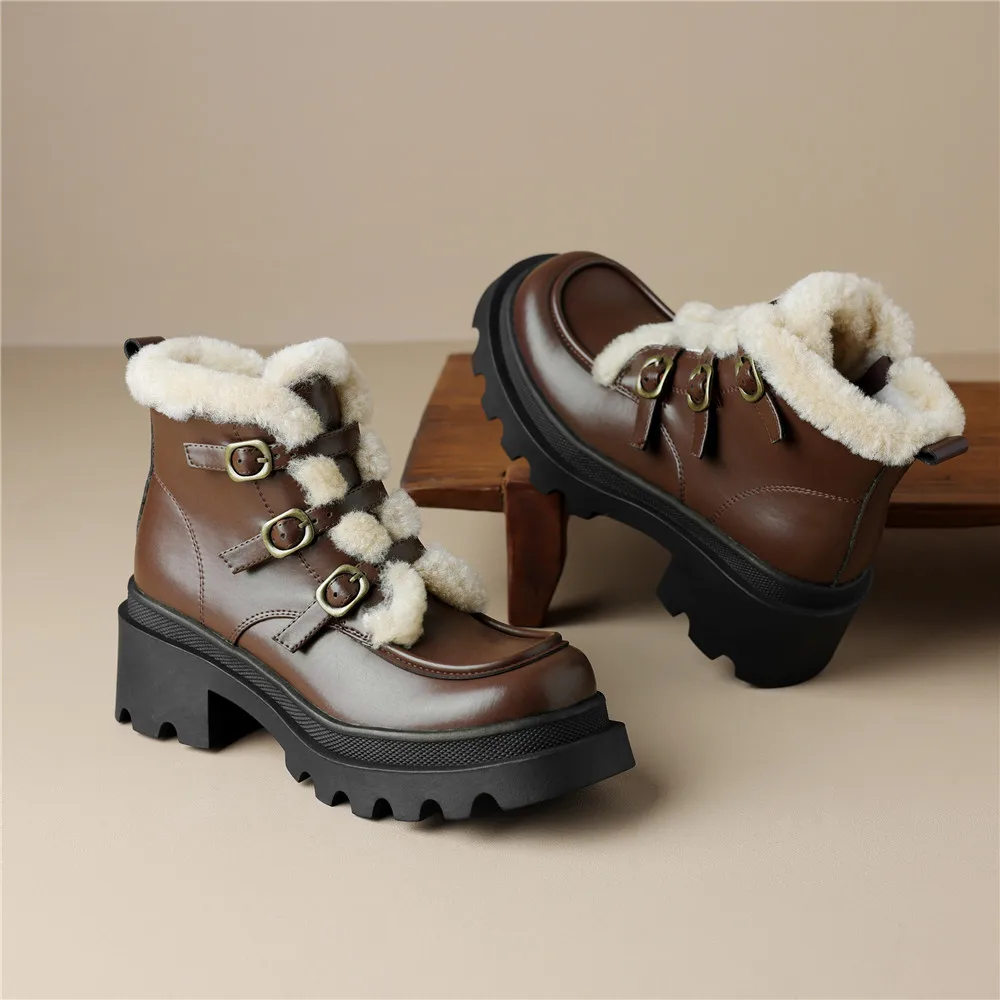 Genuine Leather Ankle Boots with Wool Blend Lining