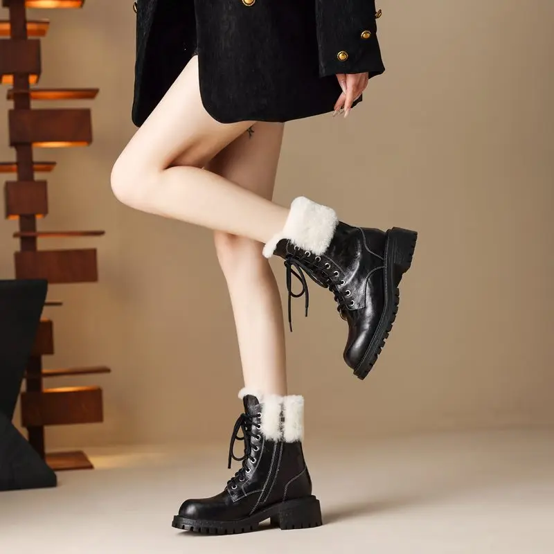 Step into winter with confidence and style with our Genuine Leather Ankle Boots. Designed for the modern woman, these boots combine functionality with fashion, ensuring that you stay warm and chic during the cold months. With a combination of zipper and lace-up features, these boots offer both security and ease of wear, making them the perfect addition to your winter wardrobe.