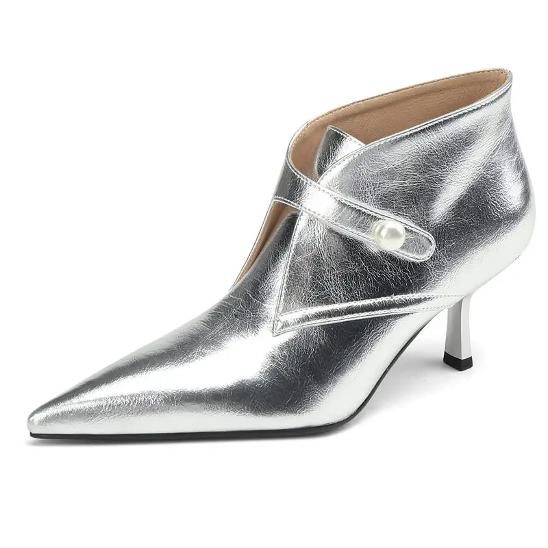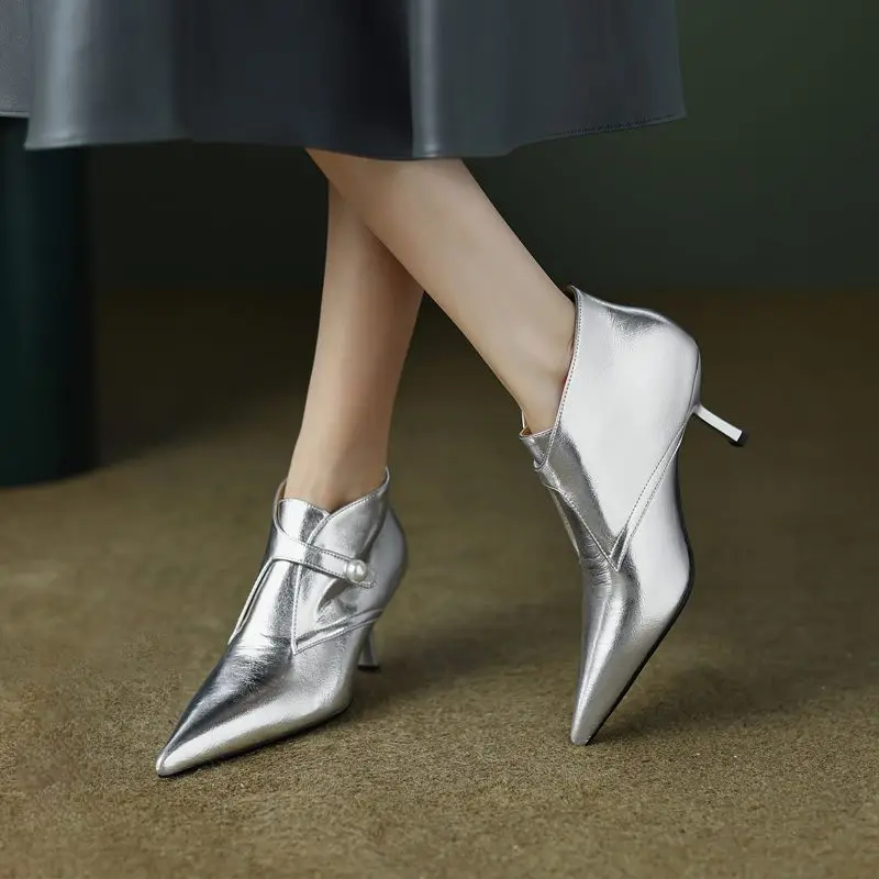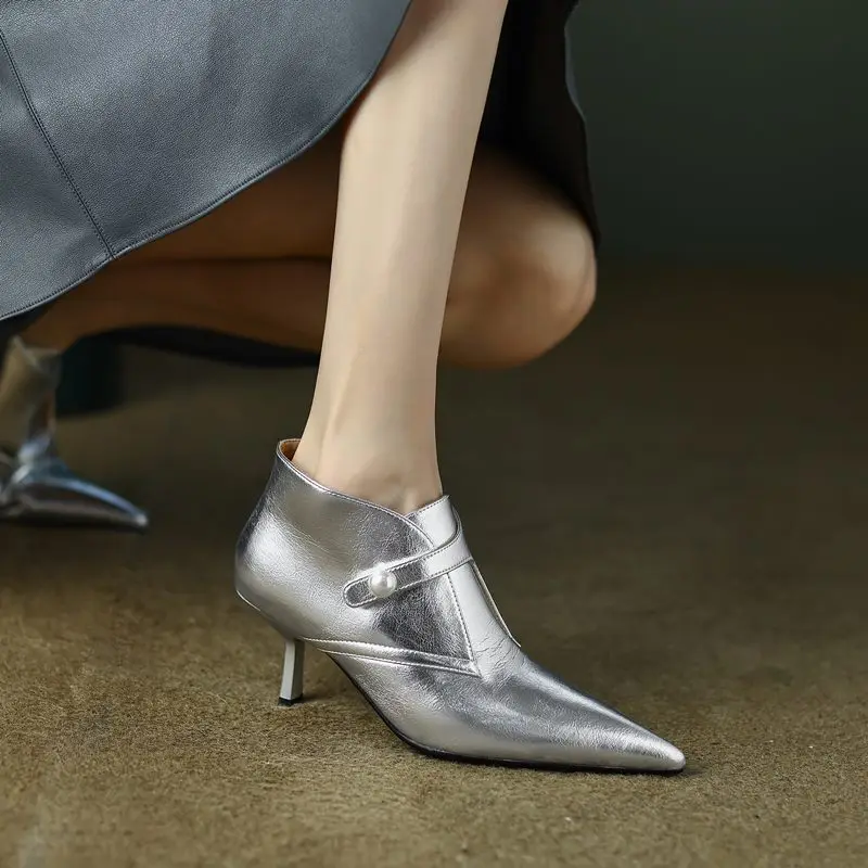 Genuine leather ankle boots with zipper and pointed toe