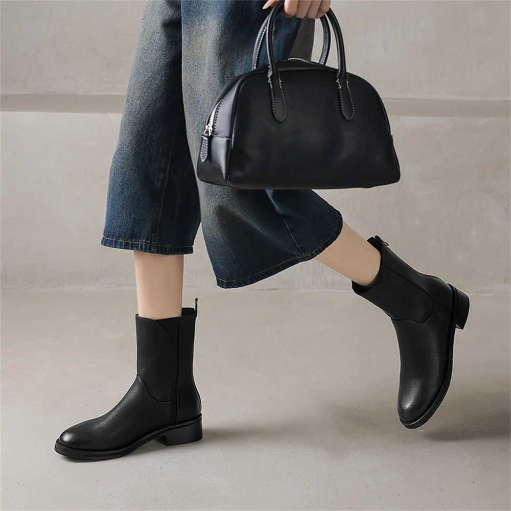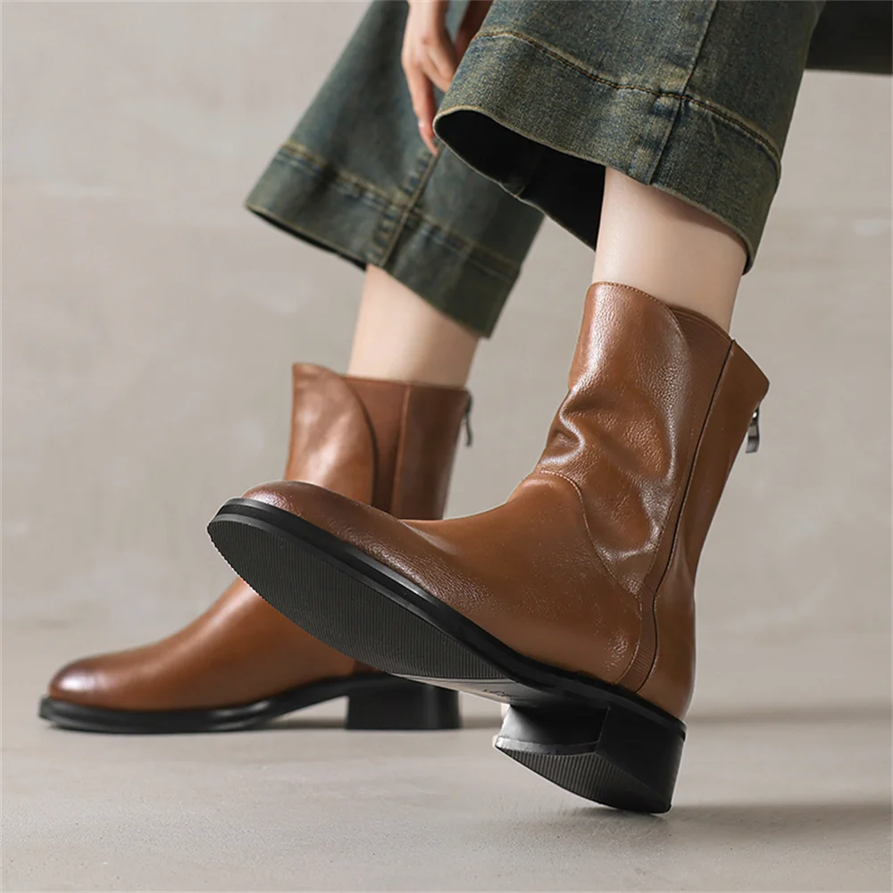 Step into style and comfort with our Genuine Leather Ankle Boots with Zipper. Designed for the modern individual, these boots are the perfect blend of fashion and functionality. Whether you’re heading to work, enjoying a night out, or simply running errands, these boots will elevate your outfit while providing all-day comfort. The premium quality of the genuine cow leather ensures durability, making these boots a staple in your wardrobe for seasons to come.