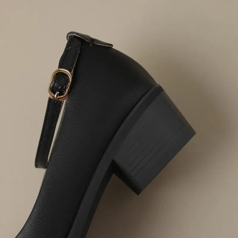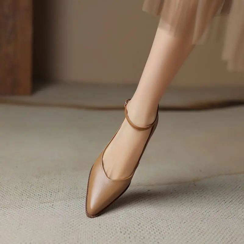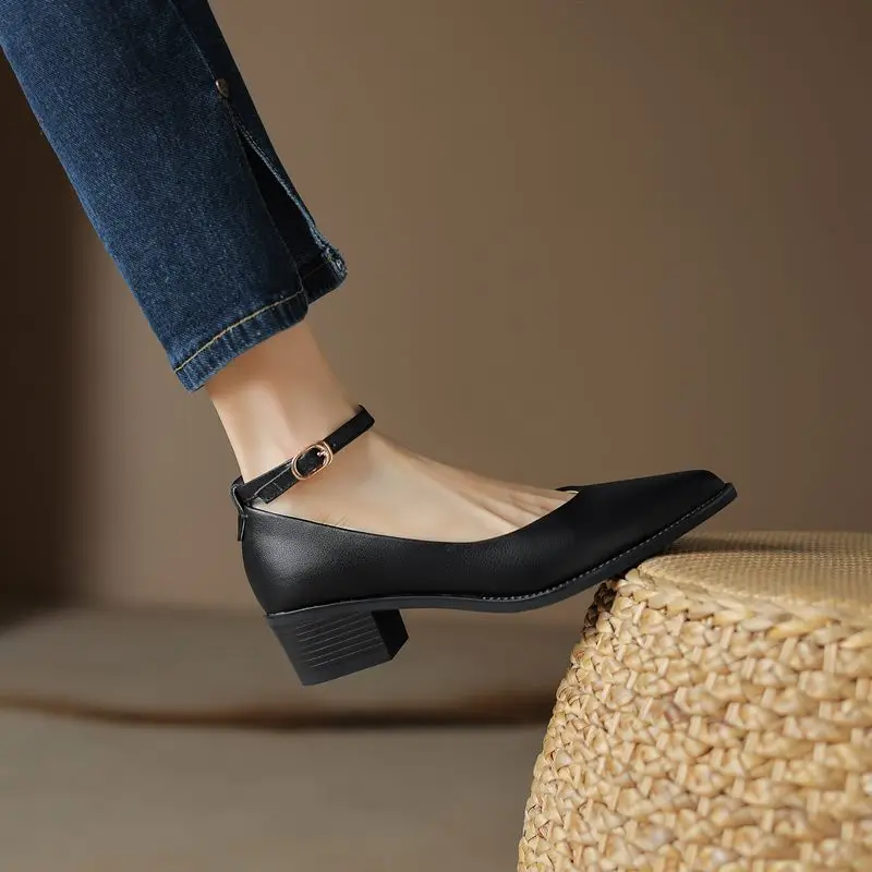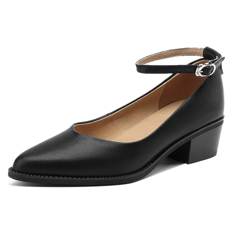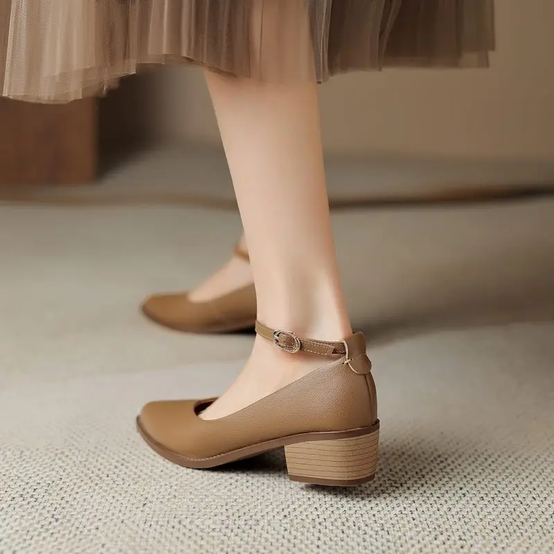 Discover the Elegance of Genuine Leather Ankle Strap Mid Heel Pumps