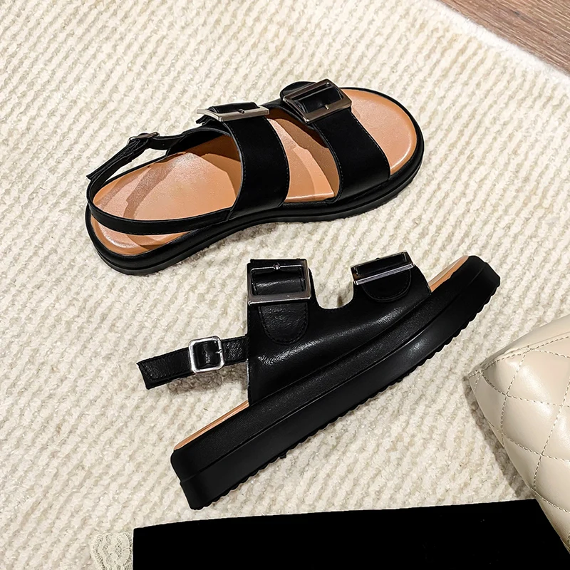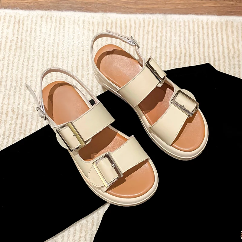 Discover the Ultimate in Comfort and Style with Our Genuine Leather Buckle Platform Sandals