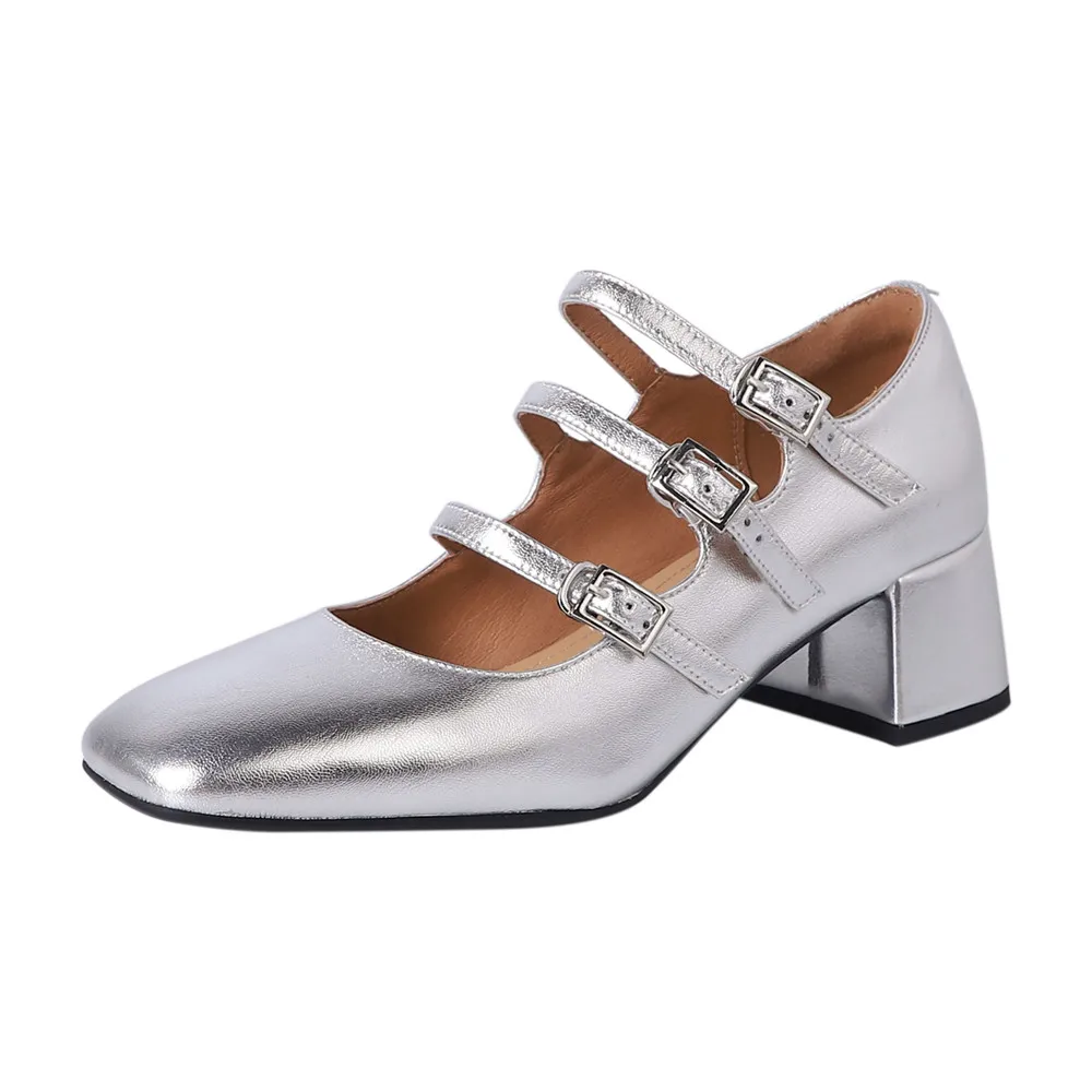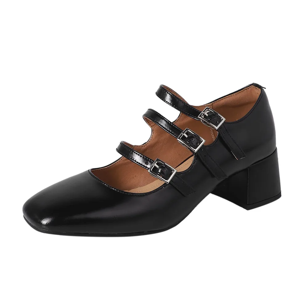 Introducing the Genuine Leather Buckle Strap Mary Janes with Thick Heels, designed for the modern woman who values both elegance and practicality. These chic pumps are not just footwear; they are a statement piece that complements your professional wardrobe. With their exquisite craftsmanship and timeless design, these Mary Janes are perfect for the office or any formal gathering.
