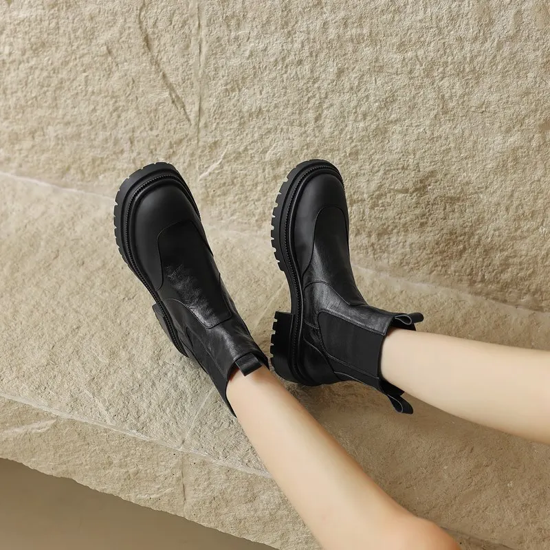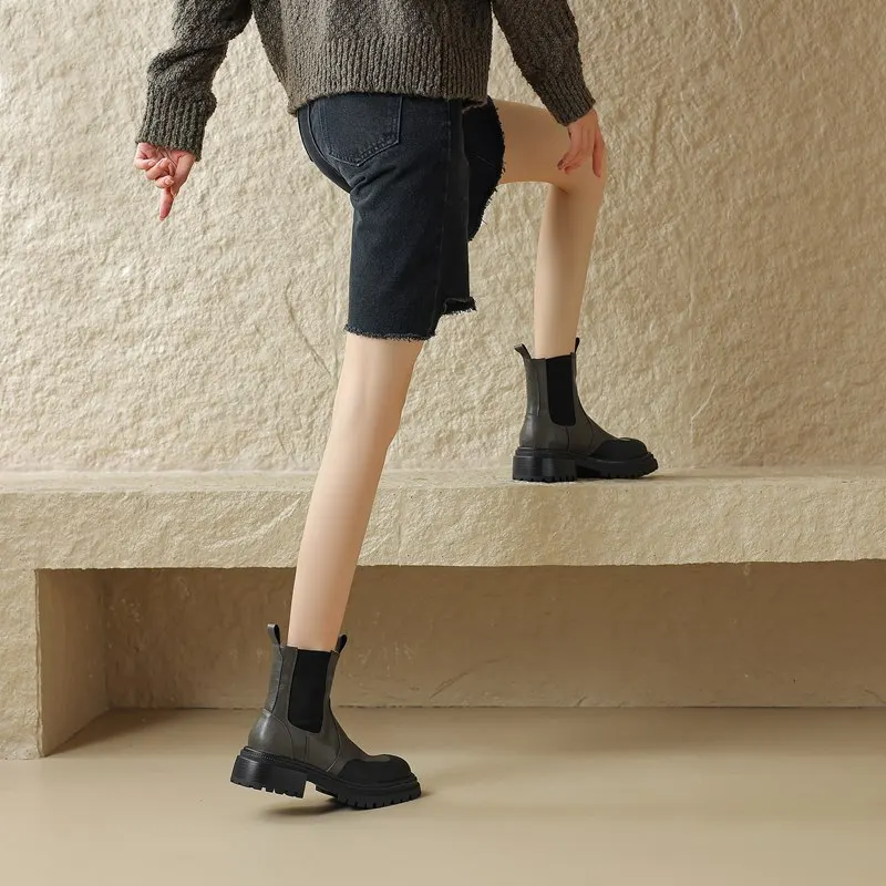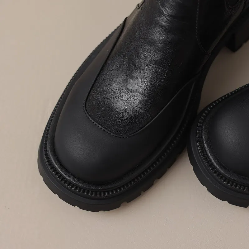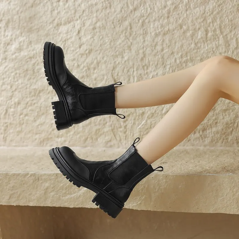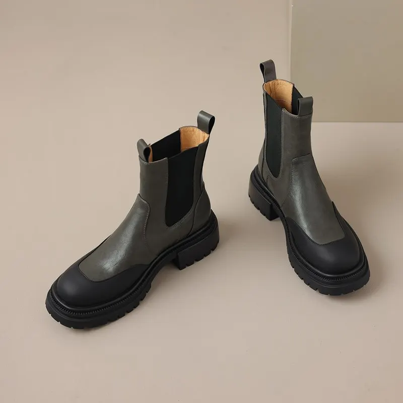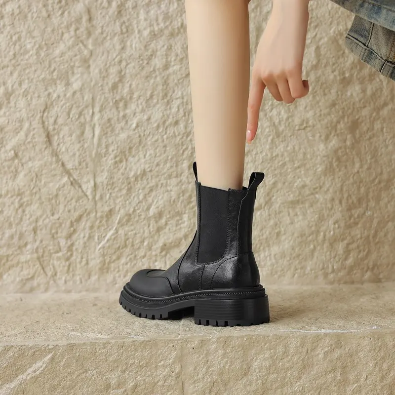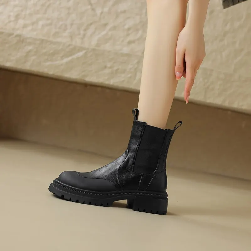 Genuine leather chelsea boots with round toe