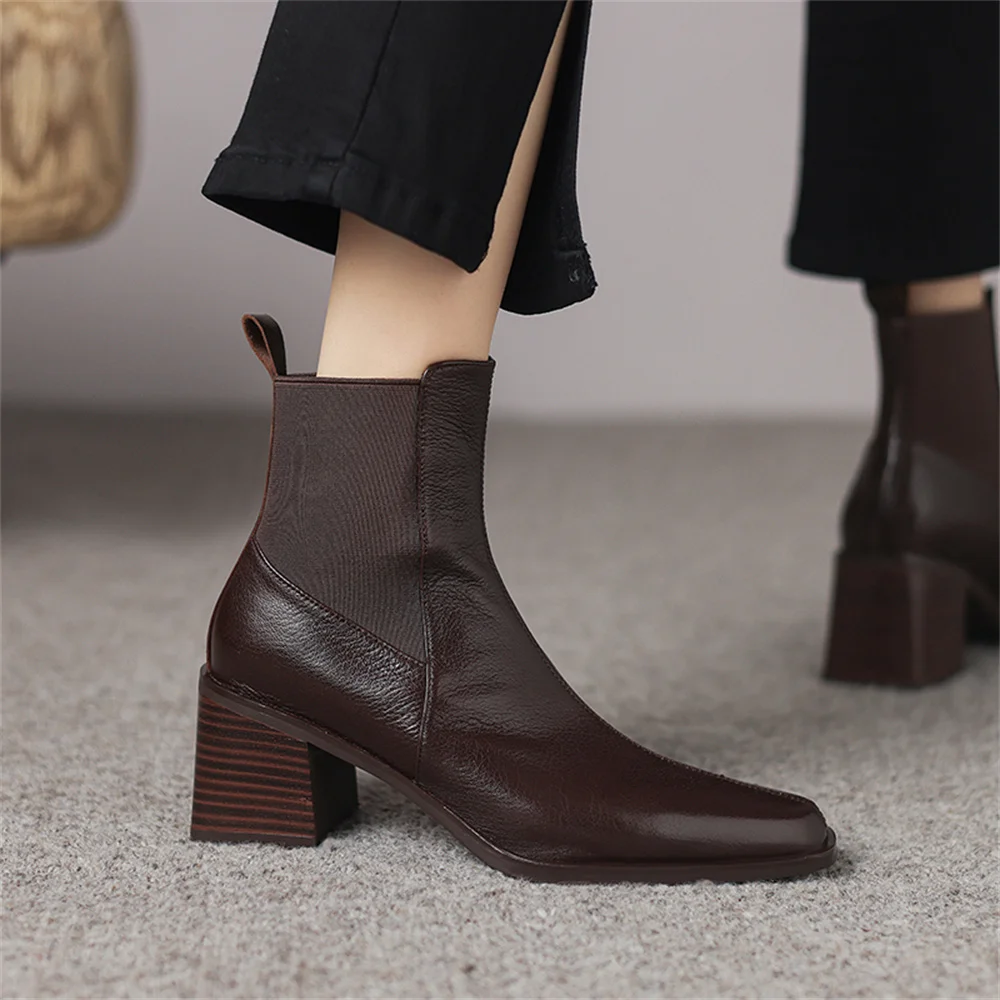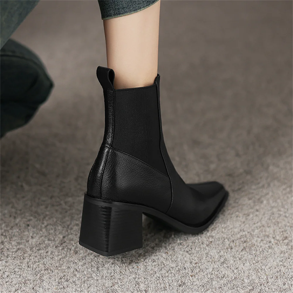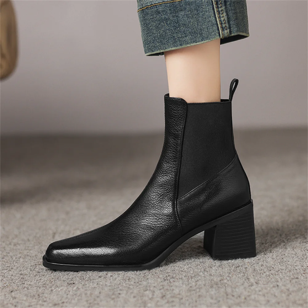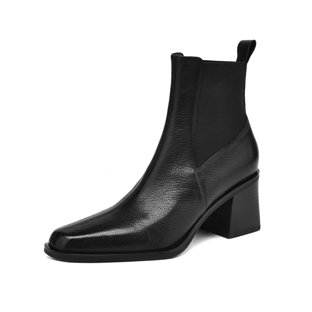 Discover the Ultimate in Style and Comfort with Our Genuine Leather Chunky Heel Ankle Boots