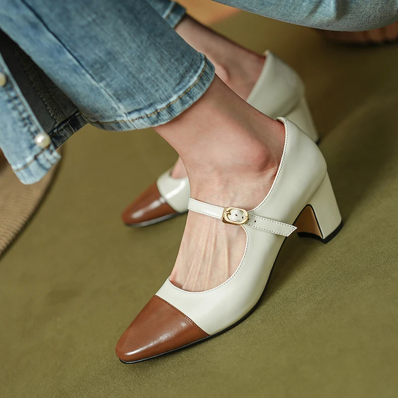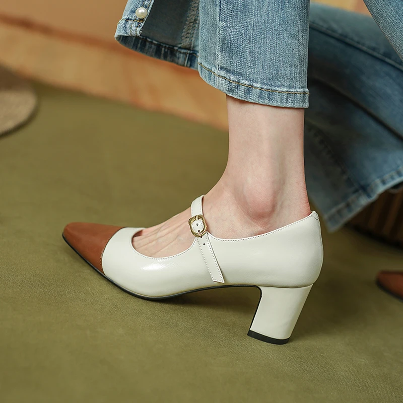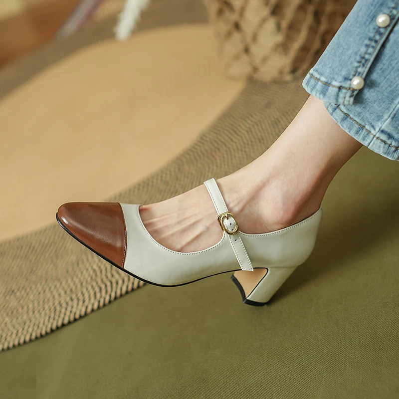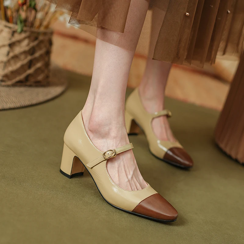 Discover the Elegance of Genuine Leather Chunky Heel Mary Jane Pumps