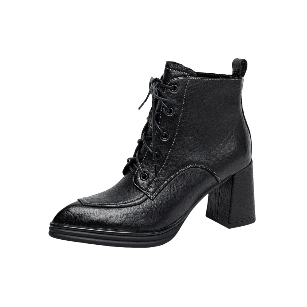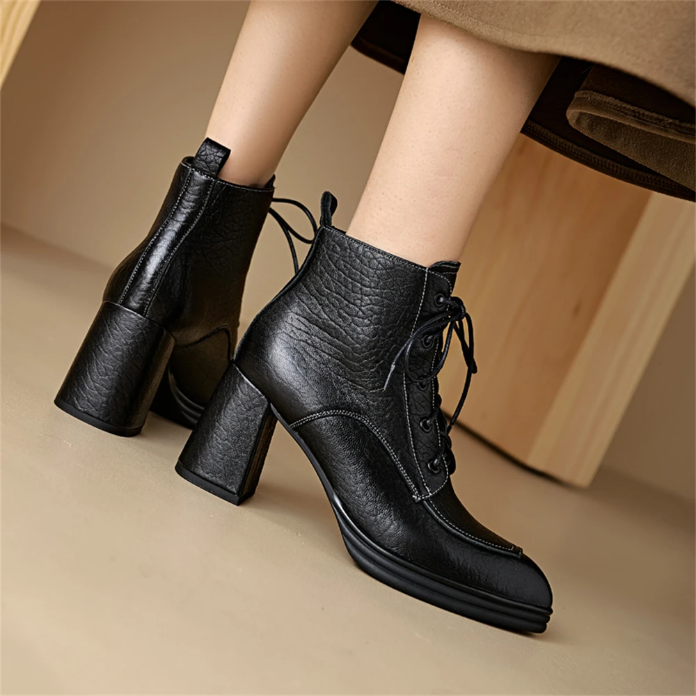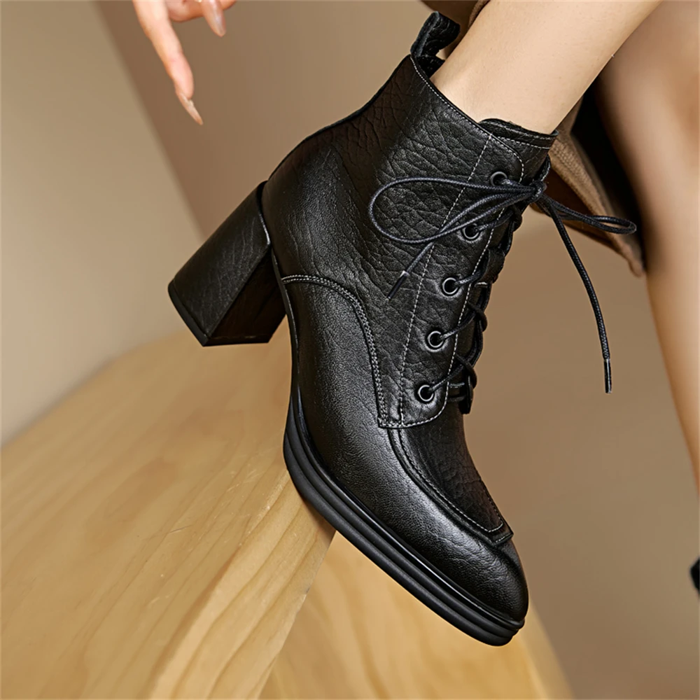 Discover the Elegance of Genuine Leather Chunky Heels Ankle Boots