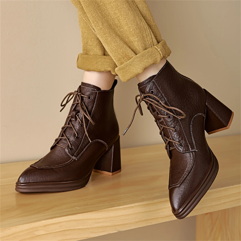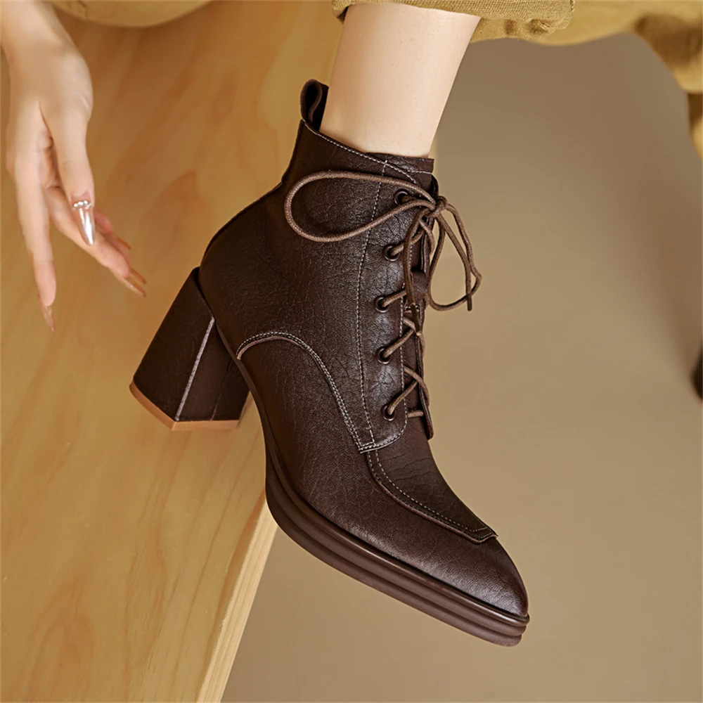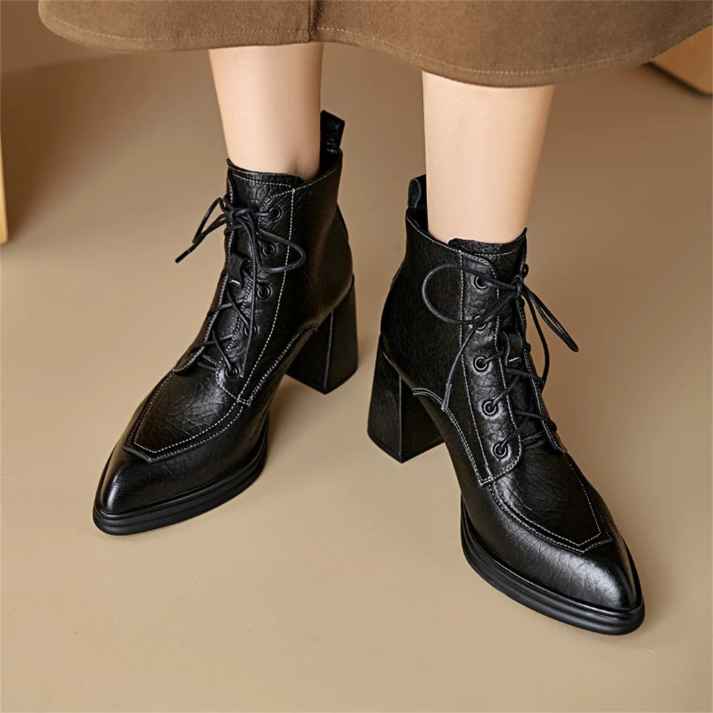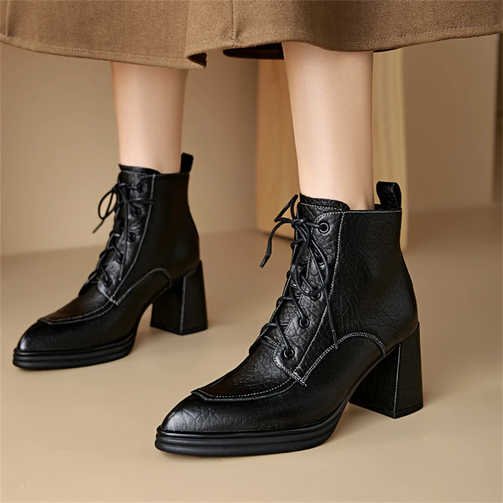Discover the Elegance of Genuine Leather Chunky Heels Ankle Boots