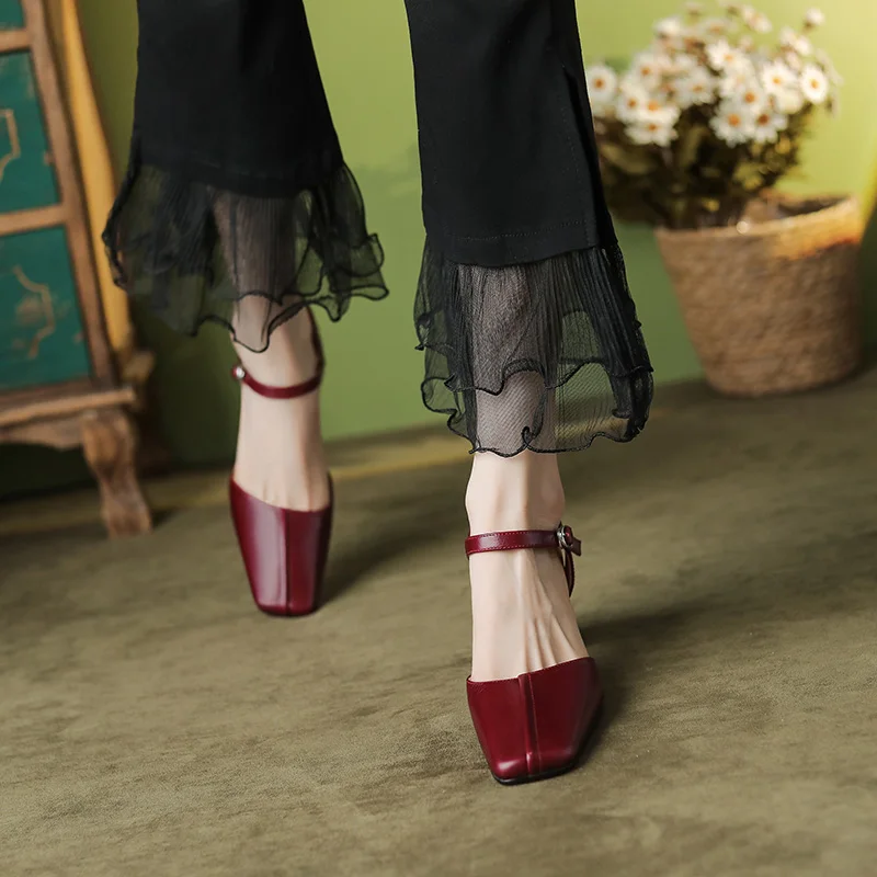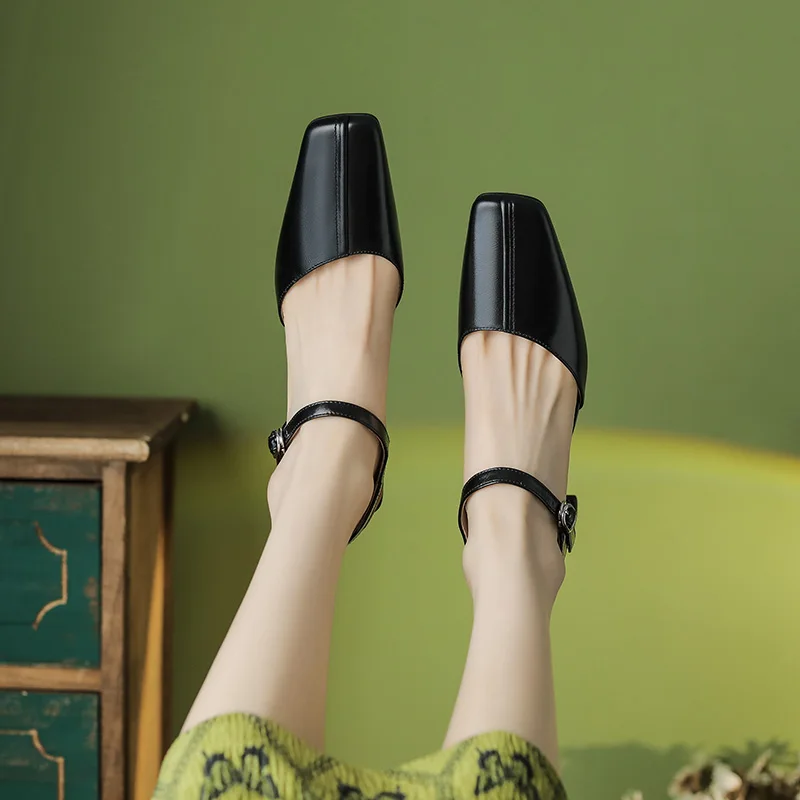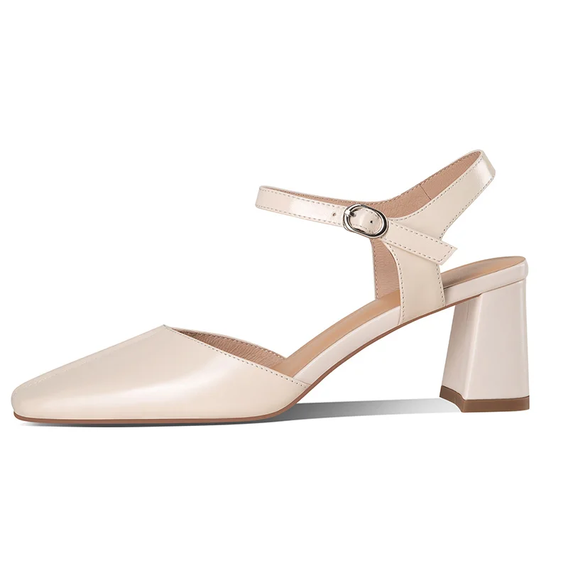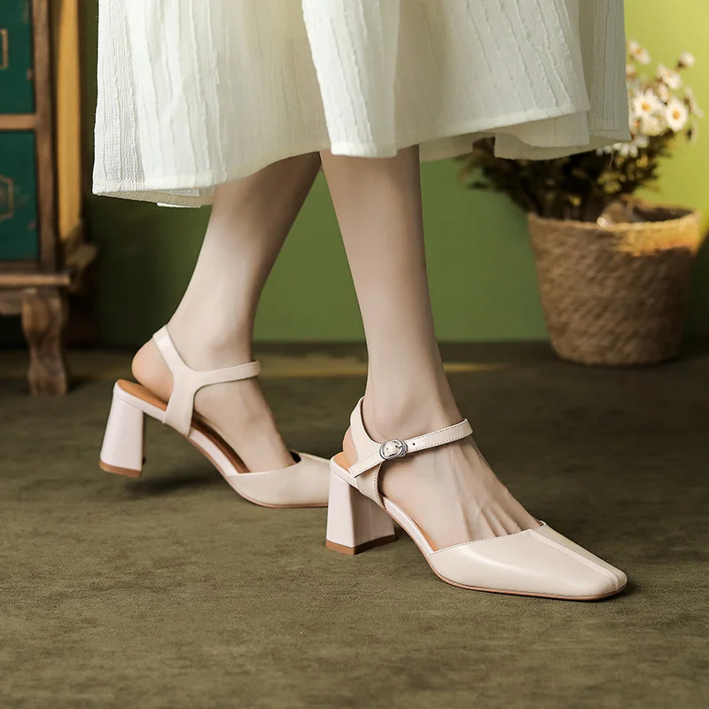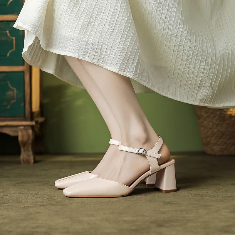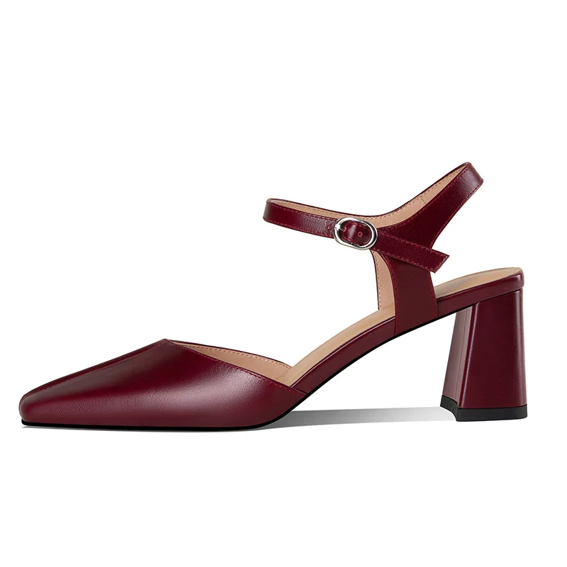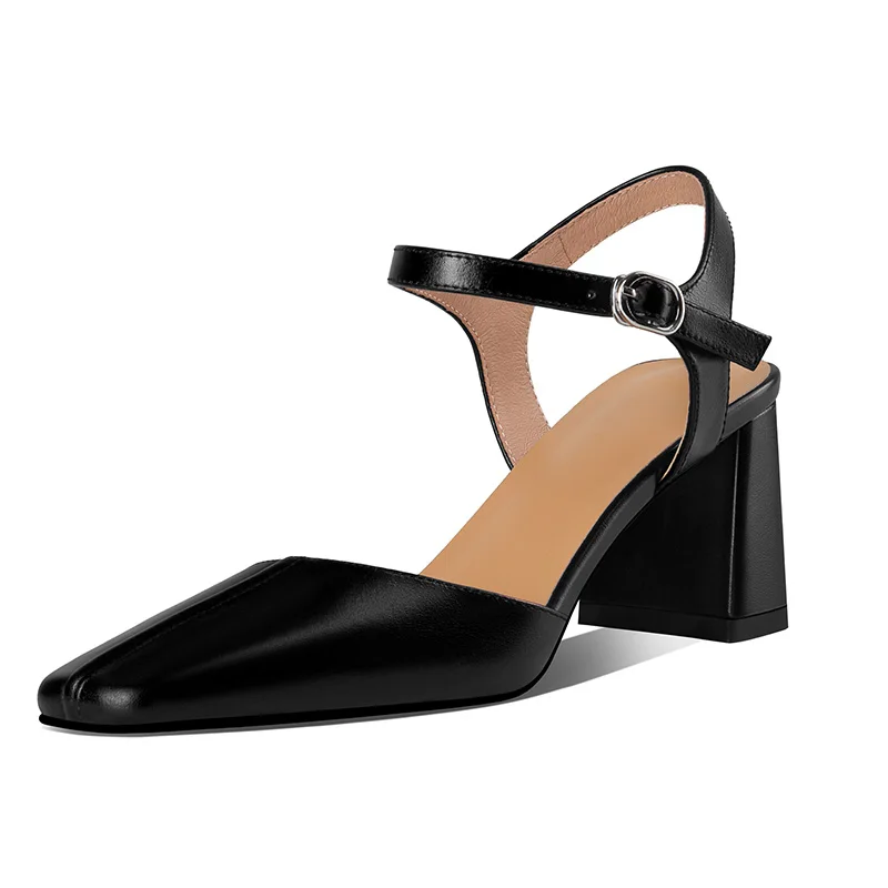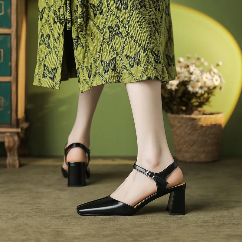 - Fashion Elements: Thick Heels, Slingbacks, Square Toe, Buckle