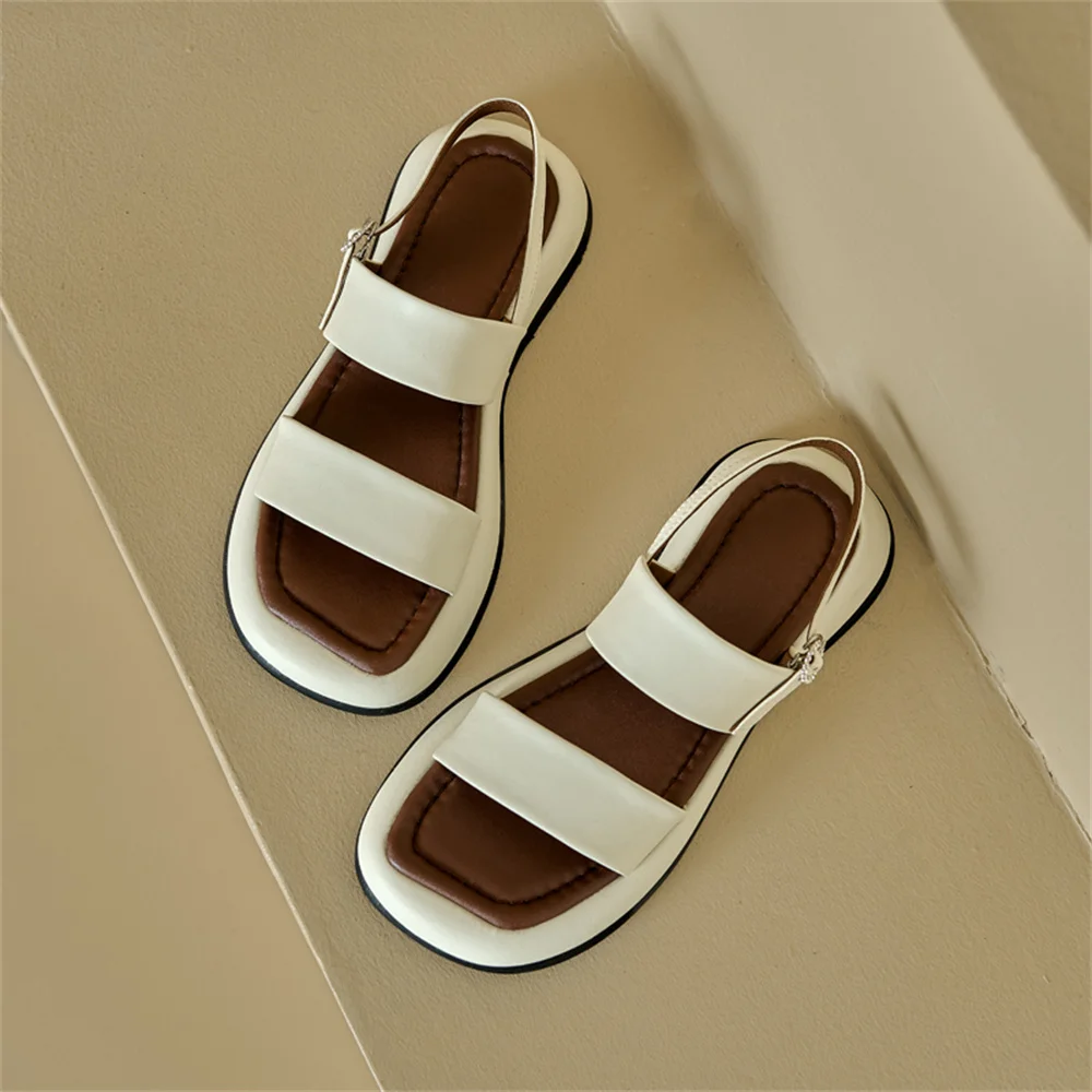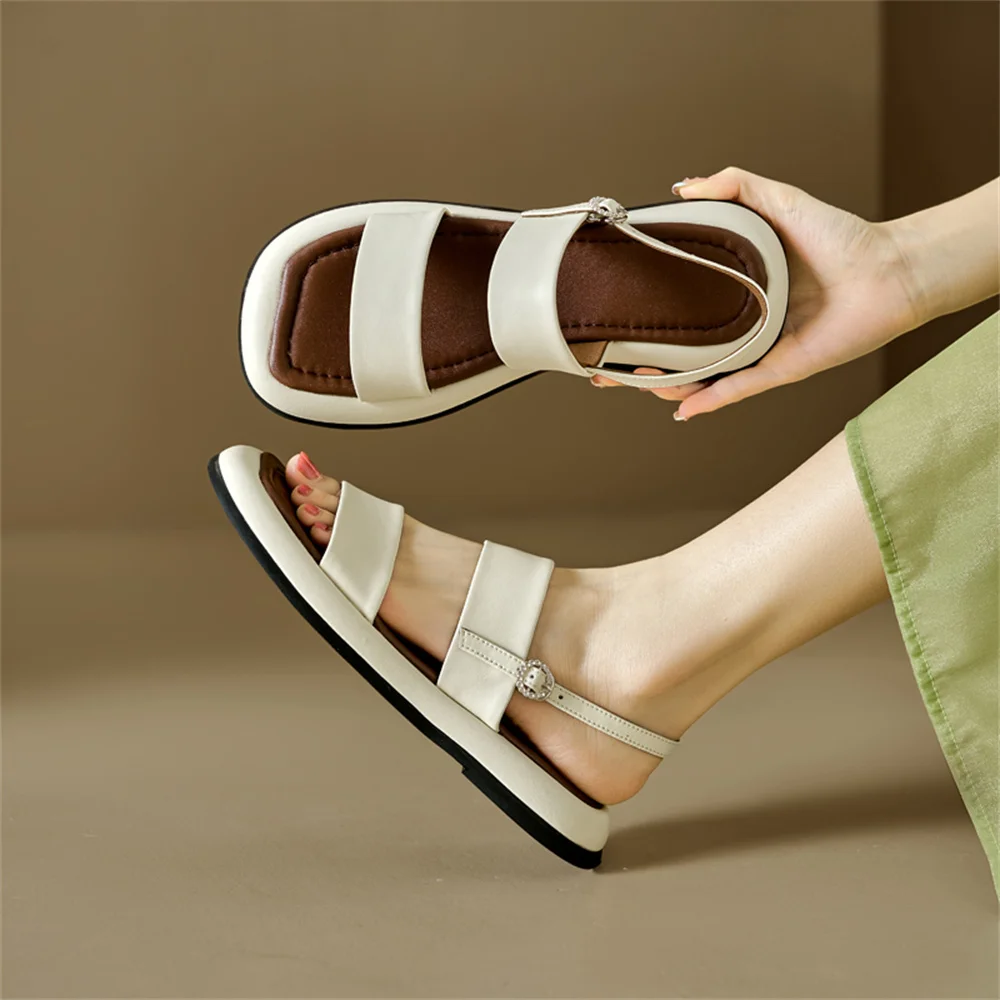 Genuine leather comfortable sandals with buckles