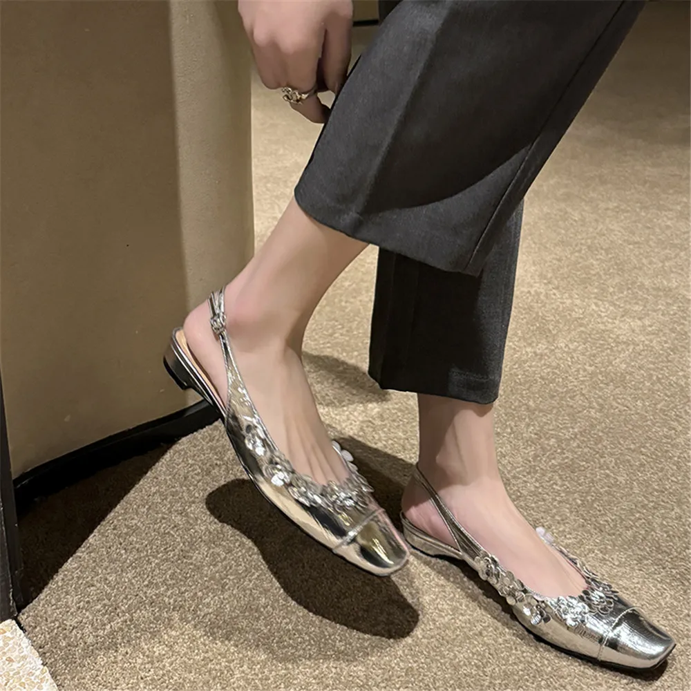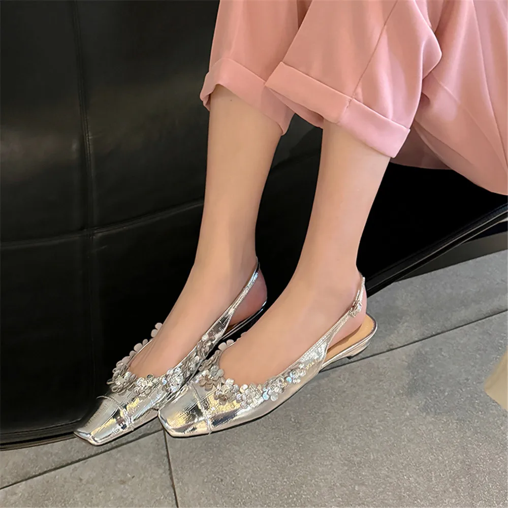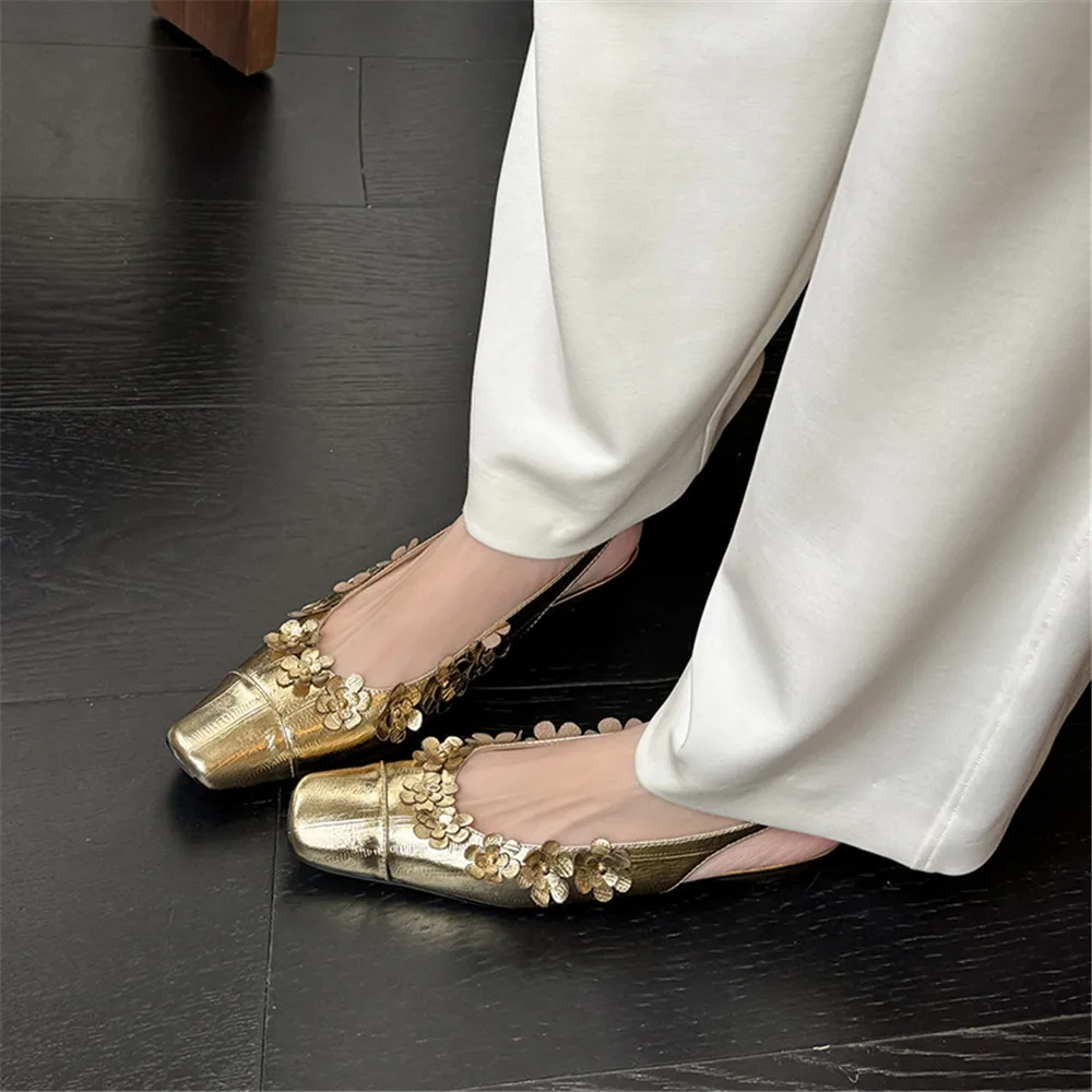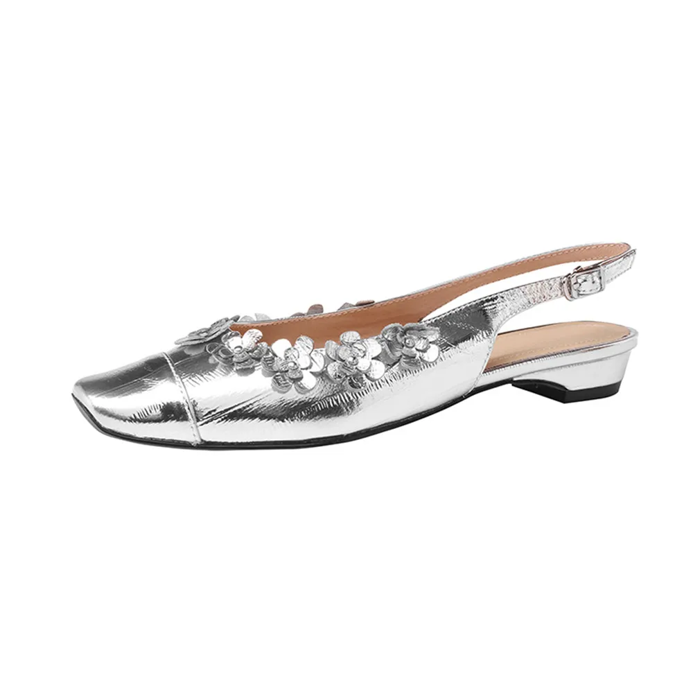 Discover the Elegance of Genuine Leather Flower Decor Slingback Pumps