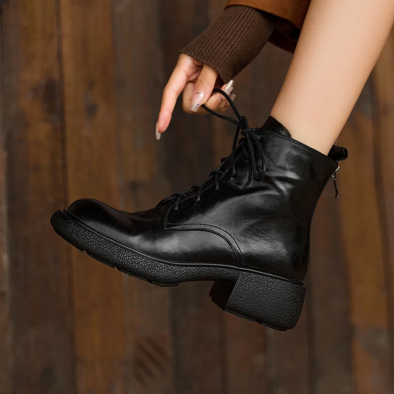 Discover the Elegance of Genuine Leather High Heel Motorcycle Ankle Boots