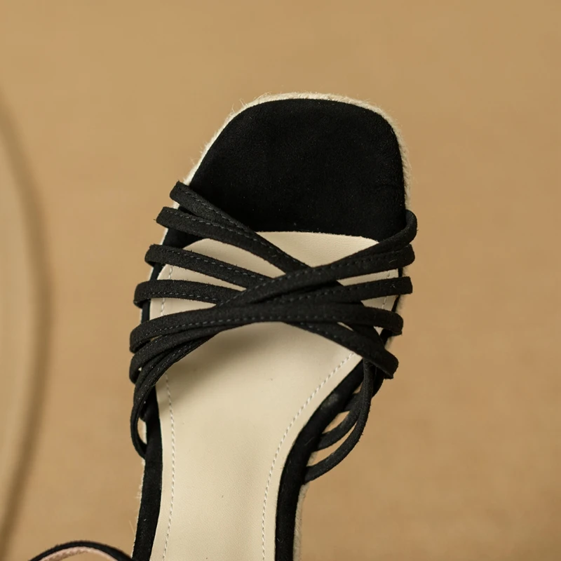 Genuine leather high heel open toe sandals