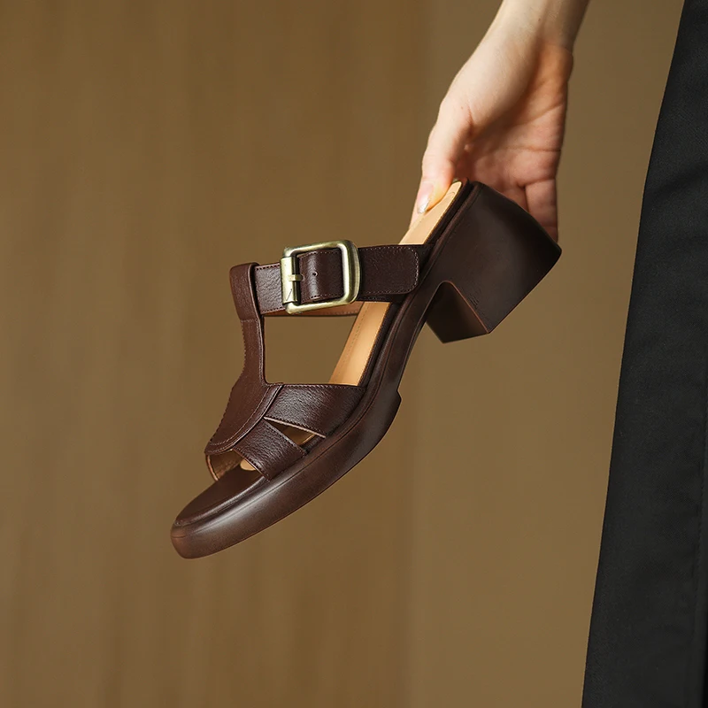 Discover the Elegance of Genuine Leather High Heeled Buckle Sandals