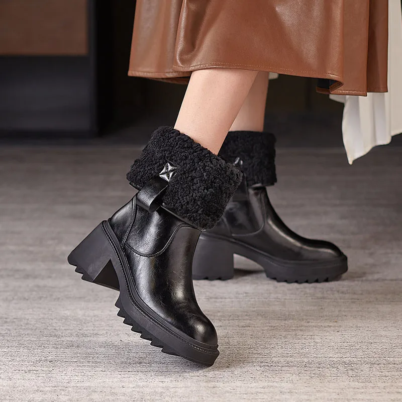 Step into winter with confidence and style with our Genuine Leather High Heels Platform Snow Boots. Designed for the modern woman who values both fashion and functionality, these boots provide the perfect combination of warmth, comfort, and chic design. Crafted from high-quality genuine cow leather, they are not only durable but also add a touch of elegance to your winter wardrobe. Whether you’re navigating through snow-covered streets or enjoying a cozy evening out, these boots are your go-to choice for the season.