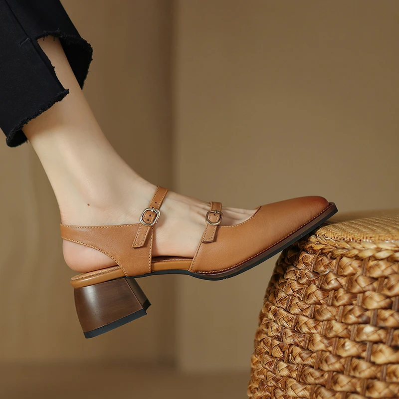 Elevate your style with our Genuine Leather High Heels Slingback Sandals. Designed for the modern woman who values both fashion and comfort, these sandals are the perfect addition to your wardrobe. With a chic retro style and a sophisticated square heel, these sandals will turn heads at any party or social gathering.