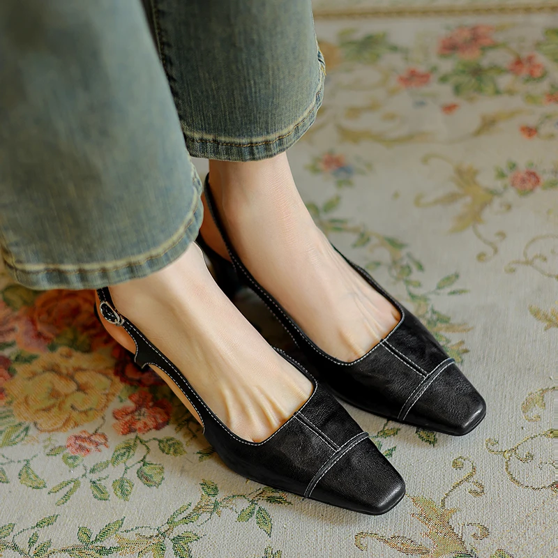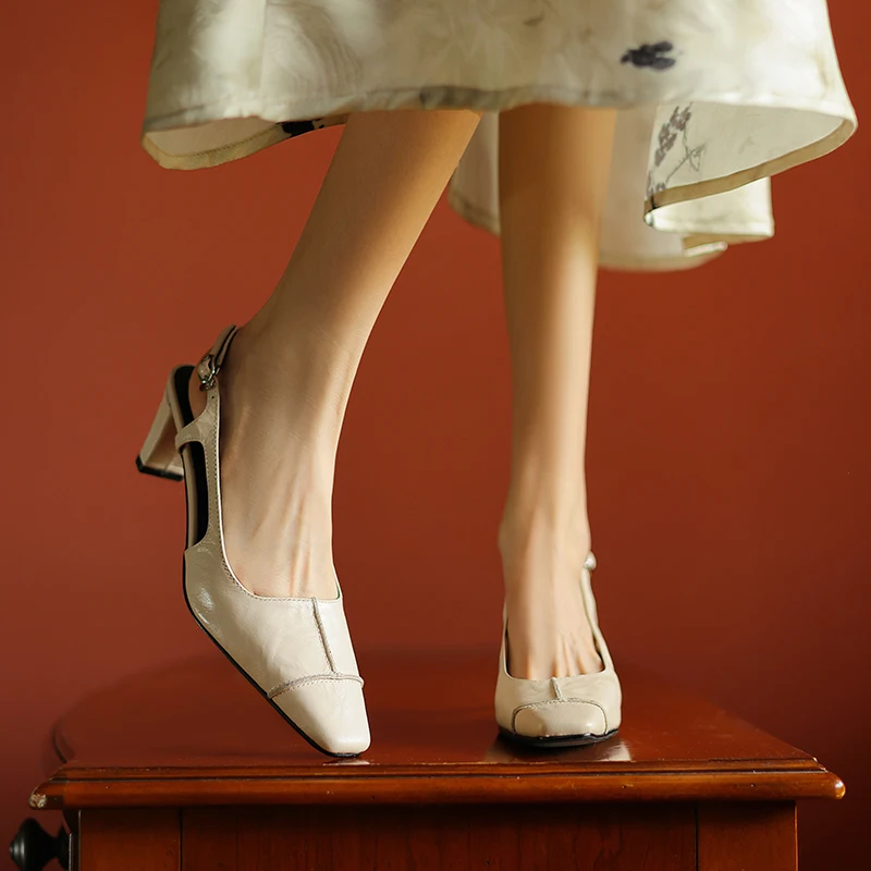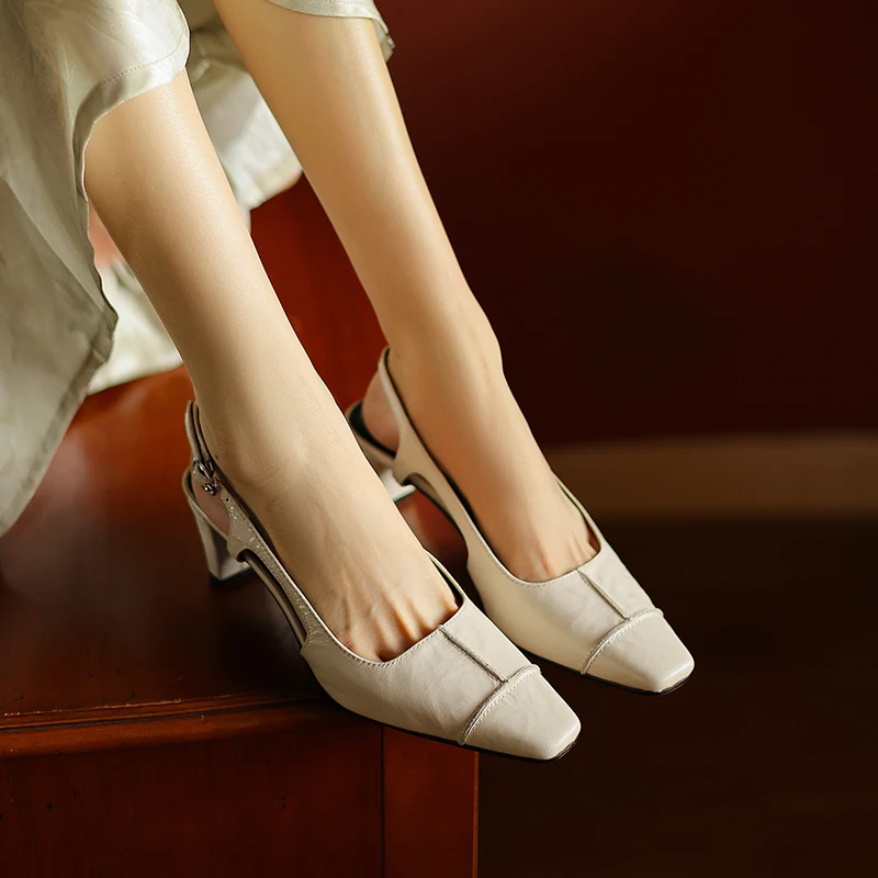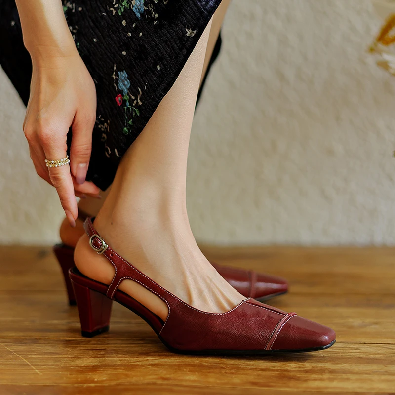Discover the Elegance of Genuine Leather High Heels Slingback Sandals