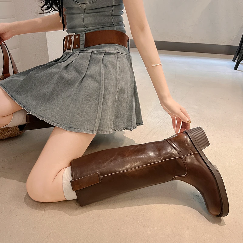 Elevate your winter wardrobe with our stunning Genuine Leather Knee High Slip On Winter Boots. Designed for comfort and style, these boots are the perfect blend of modern aesthetics and retro charm. Crafted from premium cow leather, they not only provide durability but also ensure that you keep warm during the cold winter months. Whether you’re heading out for a casual outing or a more formal event, these boots will keep you looking chic and feeling cozy.