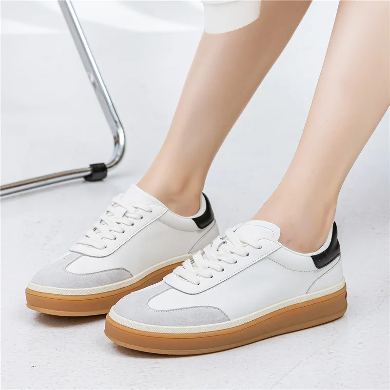 Discover the Ultimate in Comfort and Style with Our Genuine Leather Lace-Up Platform Sneakers