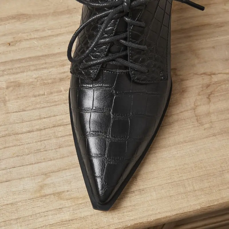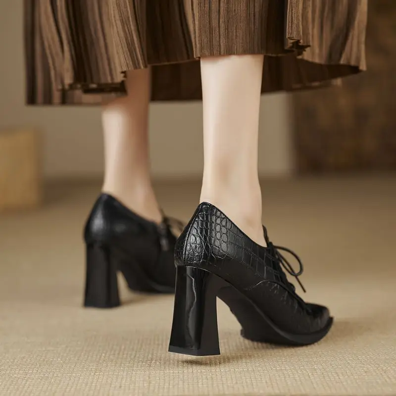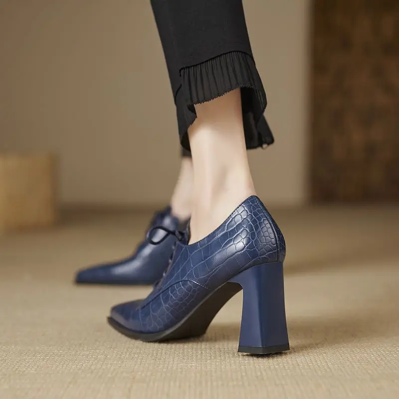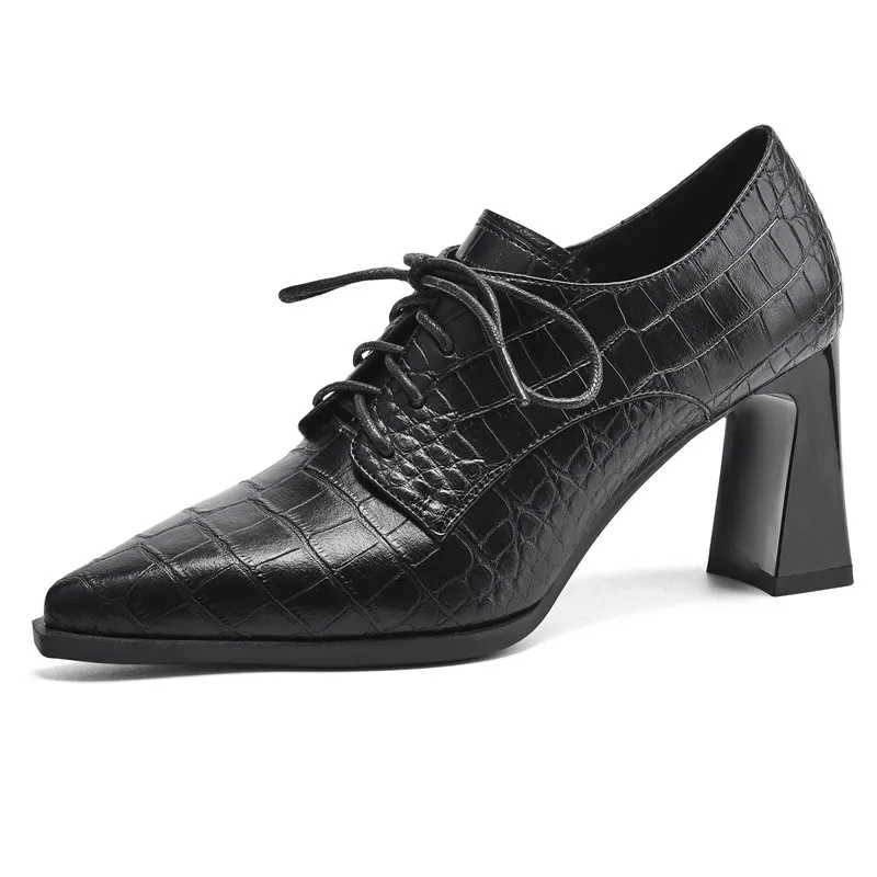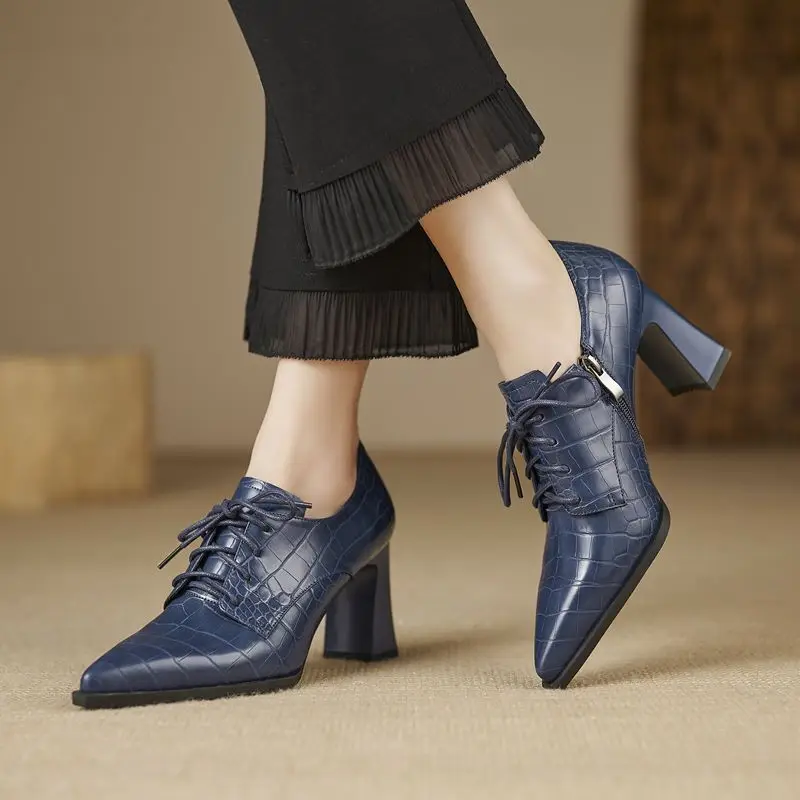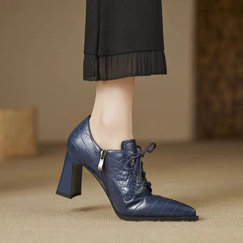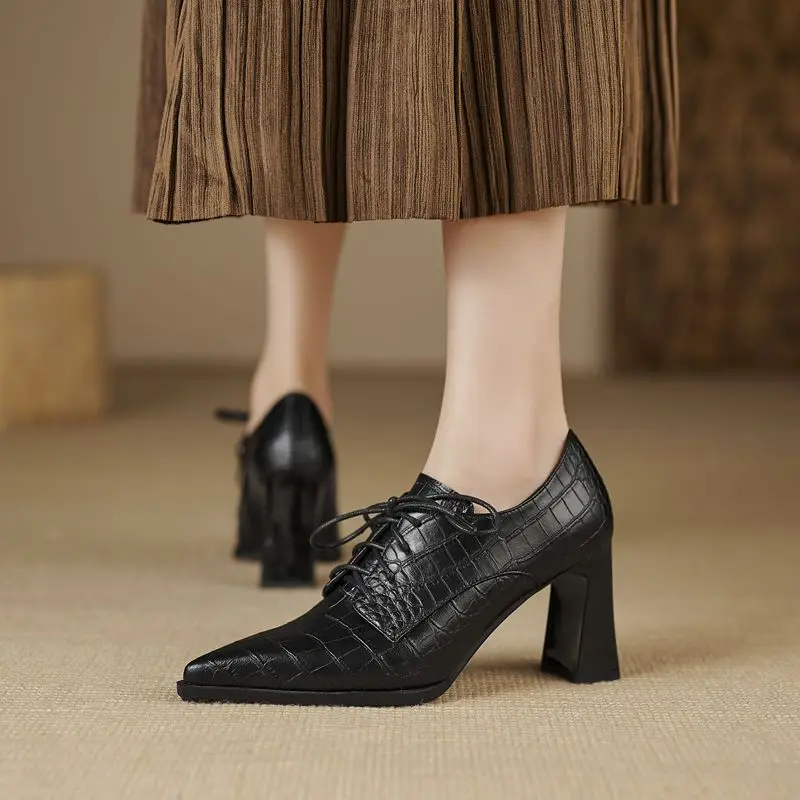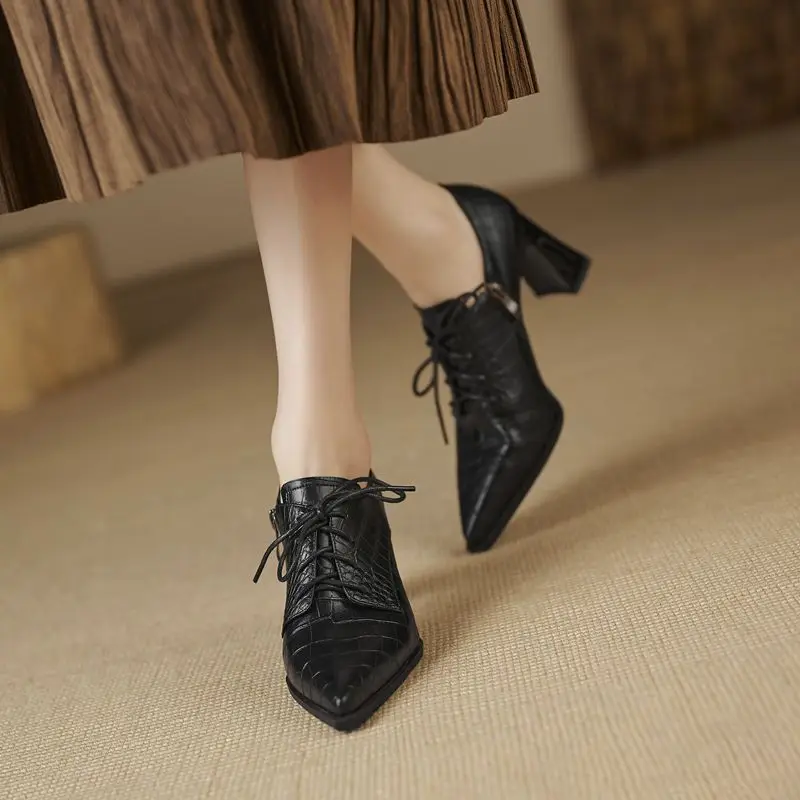 Discover the Elegance of Genuine Leather Lace-Up Pointed Toe High Heels