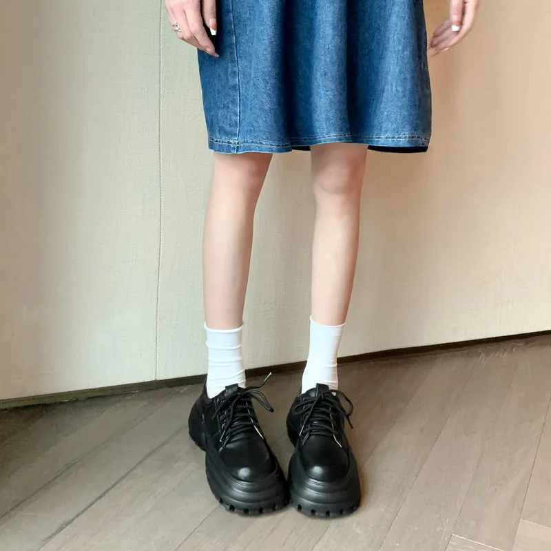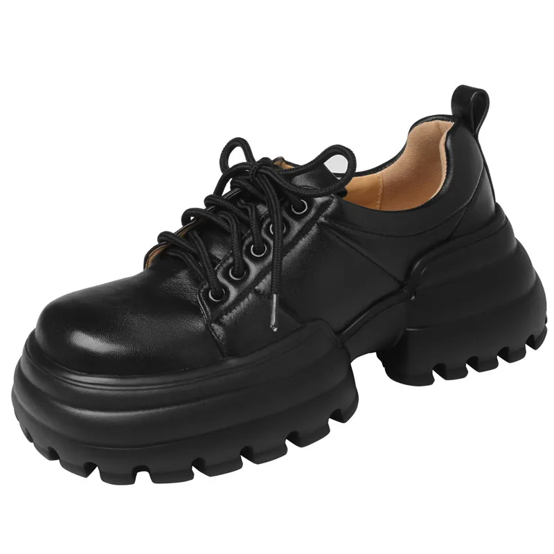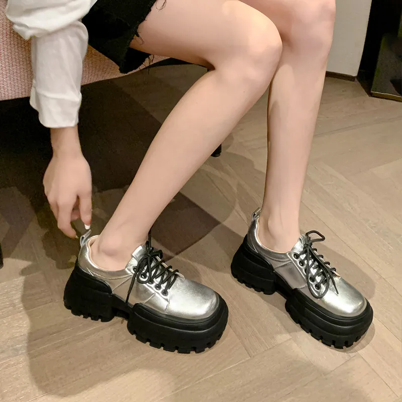 Genuine leather lace up square toe high heels pumps