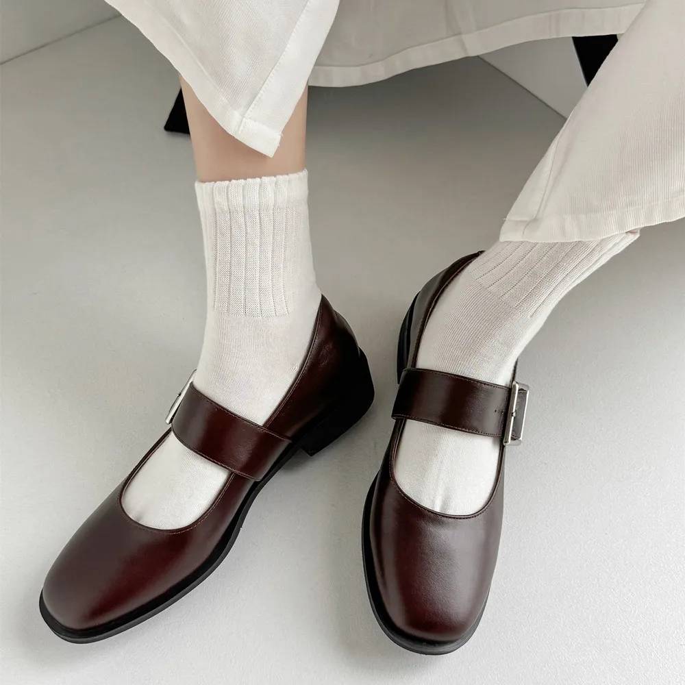 Step into sophistication with our Genuine Leather Low Heel Casual Pumps, designed for the modern woman who values both style and comfort. These pumps combine a chic aesthetic with practical features, making them the perfect addition to your wardrobe for any occasion, especially in the Spring and Autumn seasons. With a refined buckle strap closure, these shoes not only ensure a secure fit but also add a touch of elegance to your ensemble.