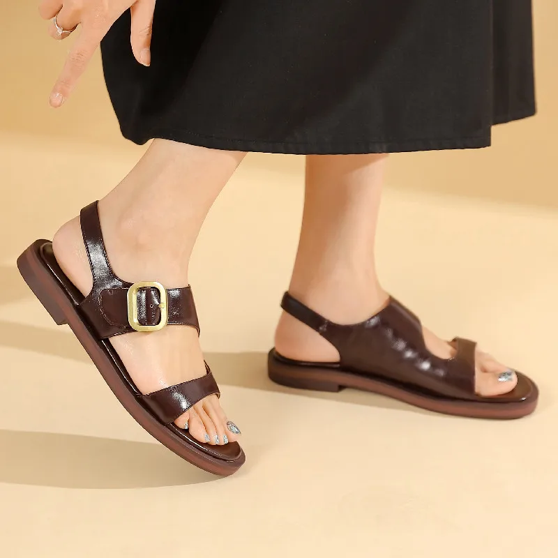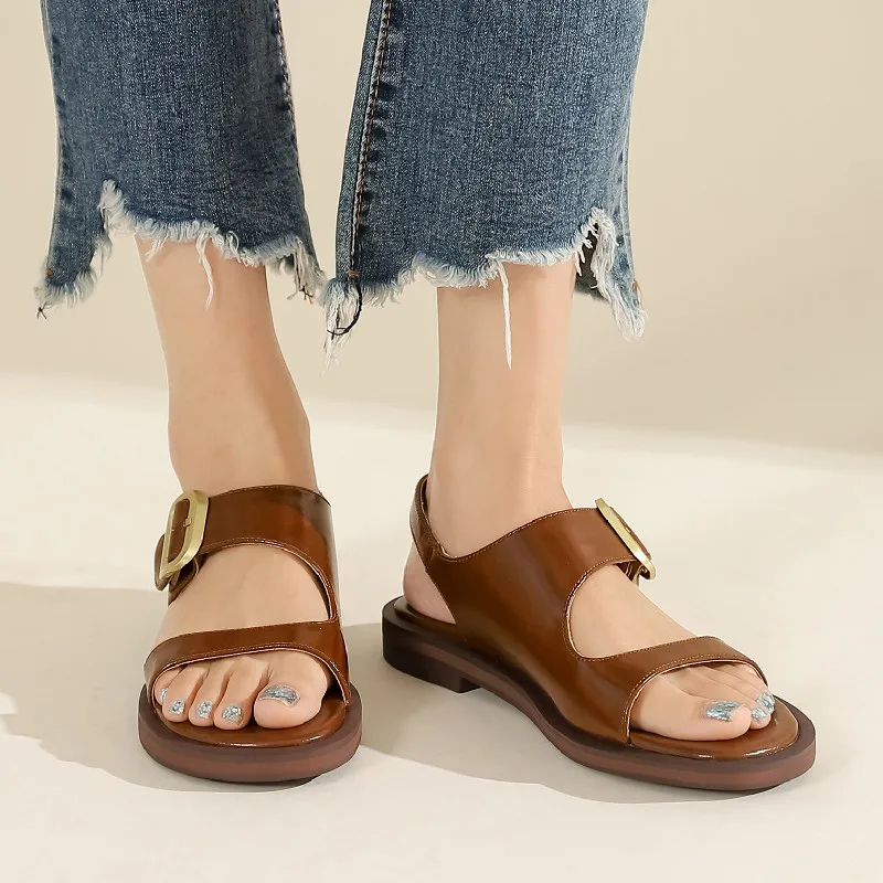 Discover the Elegance of Our Genuine Leather Low Heel Casual Sandals