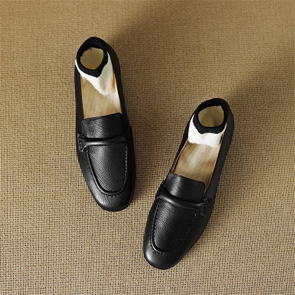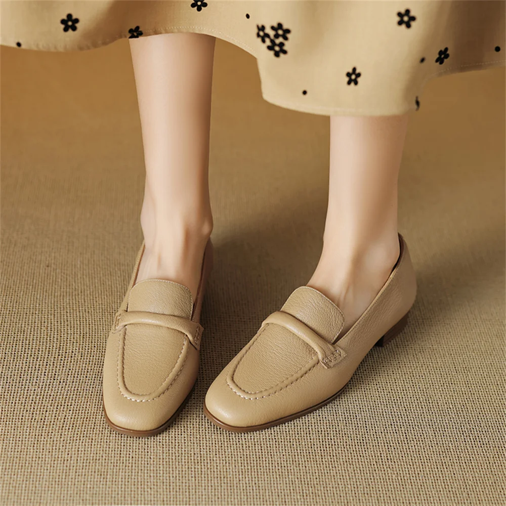 Discover the Elegance of Genuine Leather Low Heels Slip On Loafers