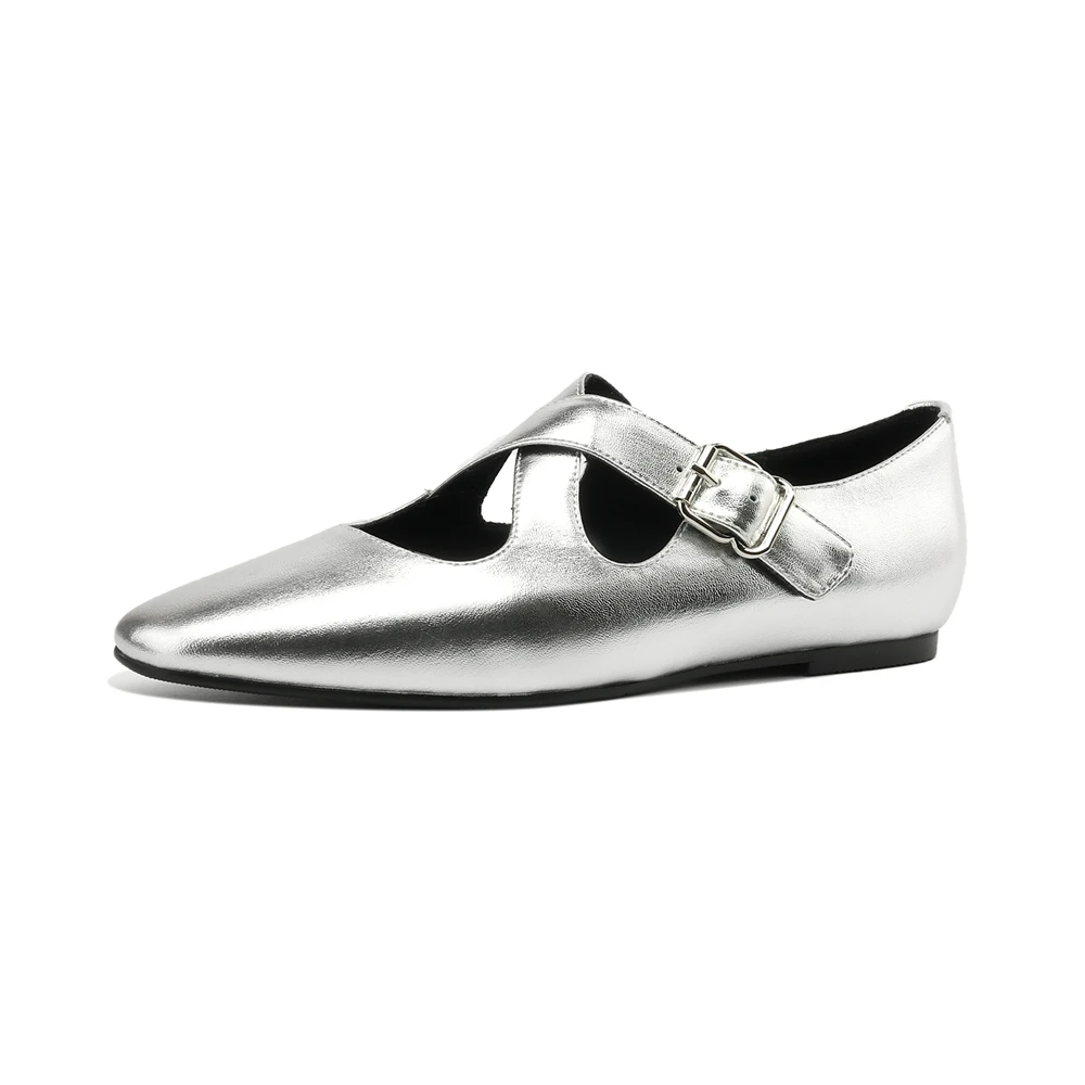 Genuine leather mary jane flats with buckles