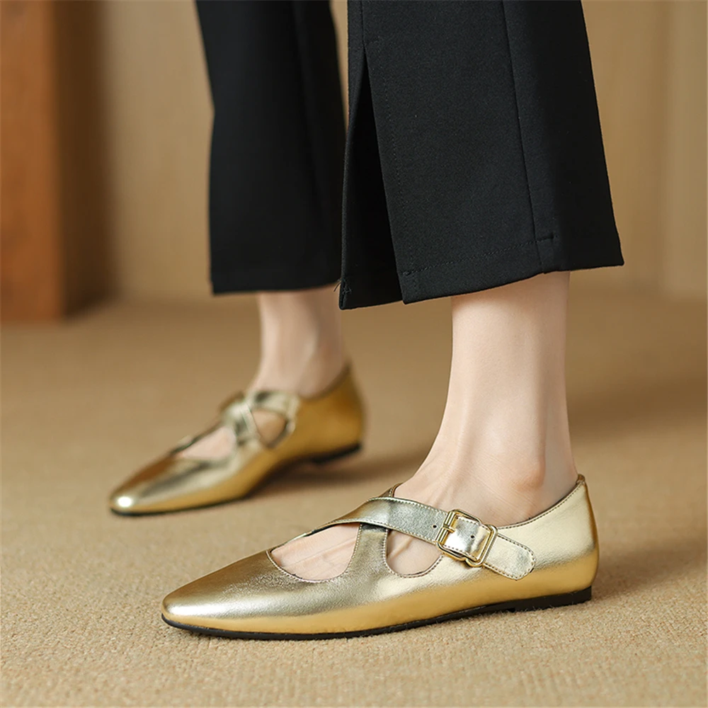 Discover the Elegance of Genuine Leather Mary Jane Flats with Buckles