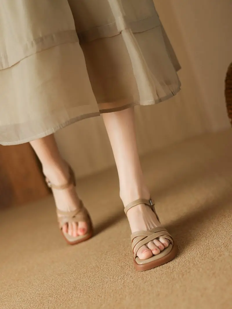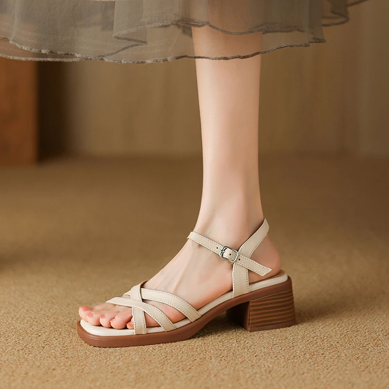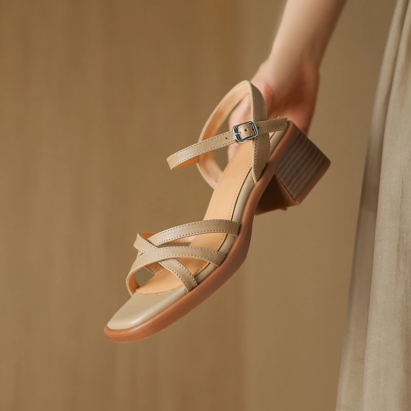 Discover the Elegance of Genuine Leather Mid Heel Sandals