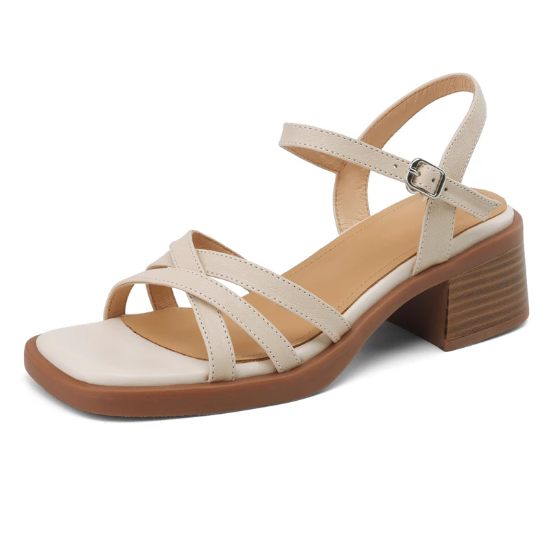 Genuine leather mid heel sandals for summer office wear
