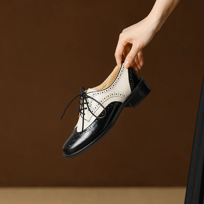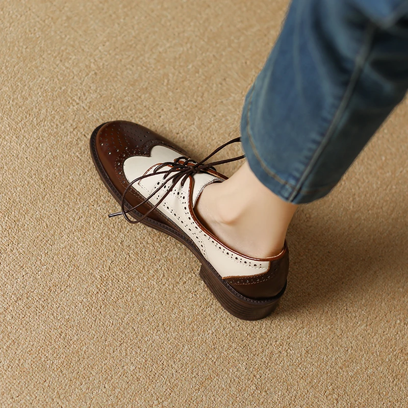 Genuine Leather Oxford Lace-Up Shoes for Women