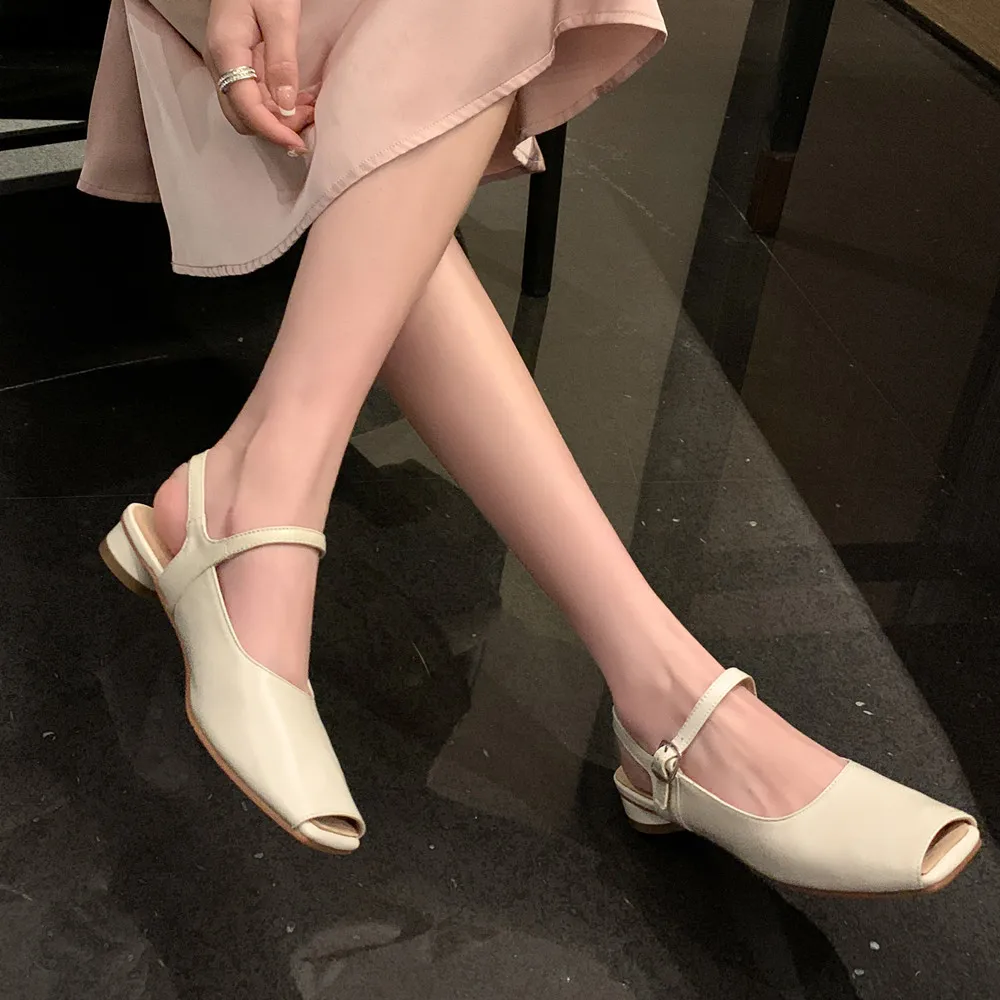 Discover the Elegance of Genuine Leather Peep Toe Low Heel Pumps
