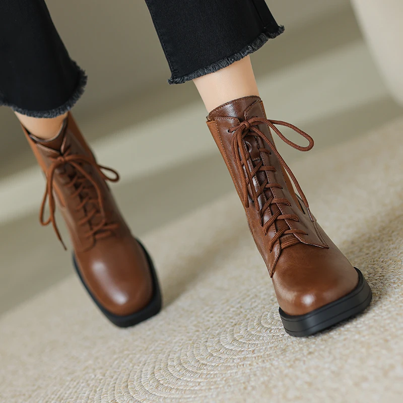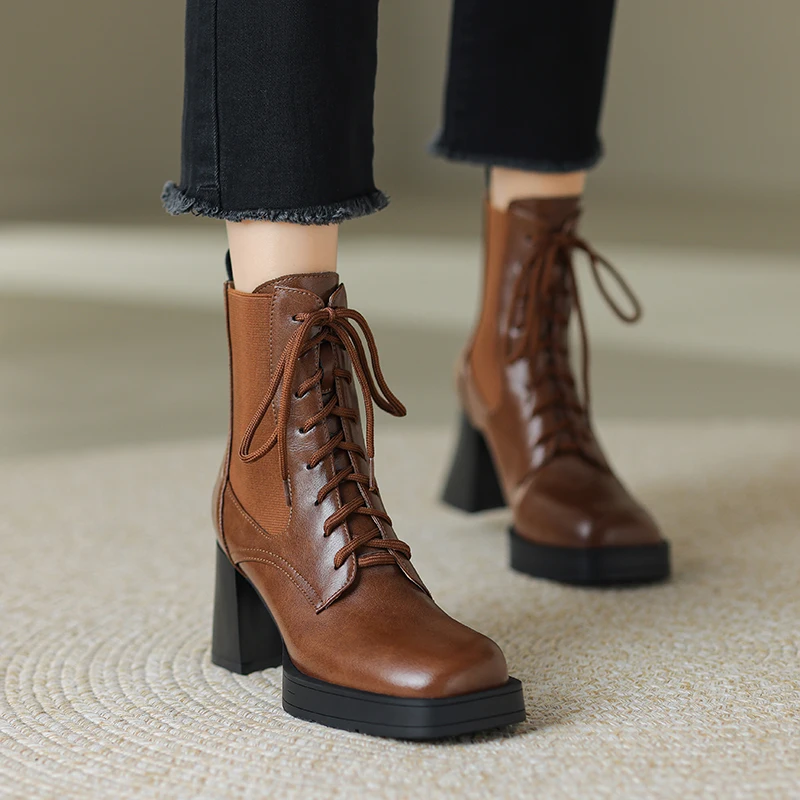 Step into Style with Our Genuine Leather Platform Ankle Boots