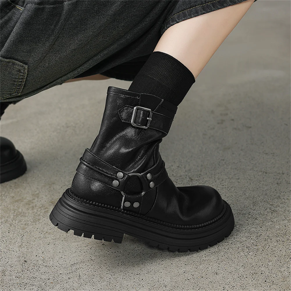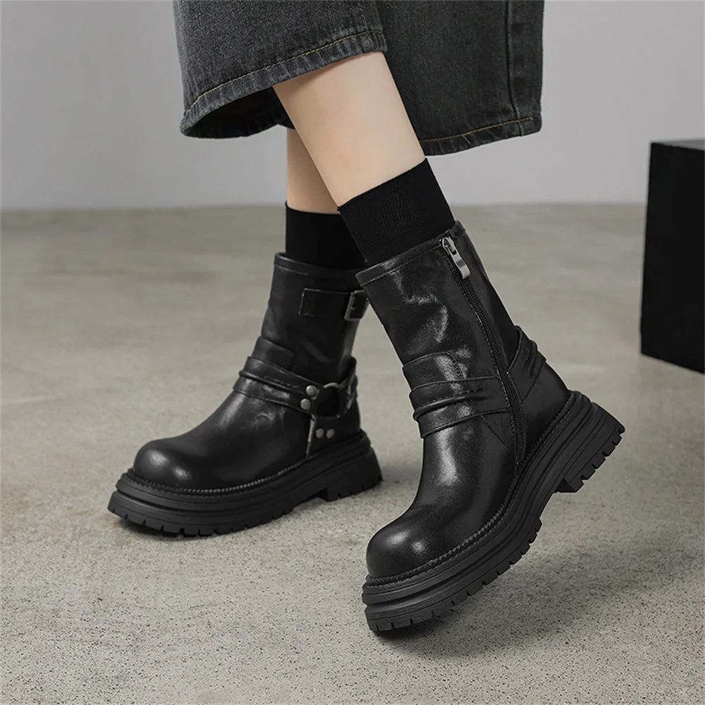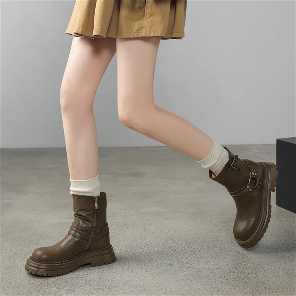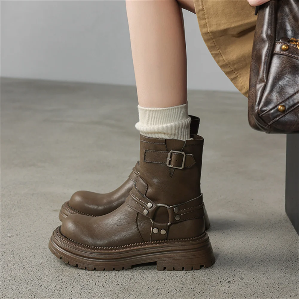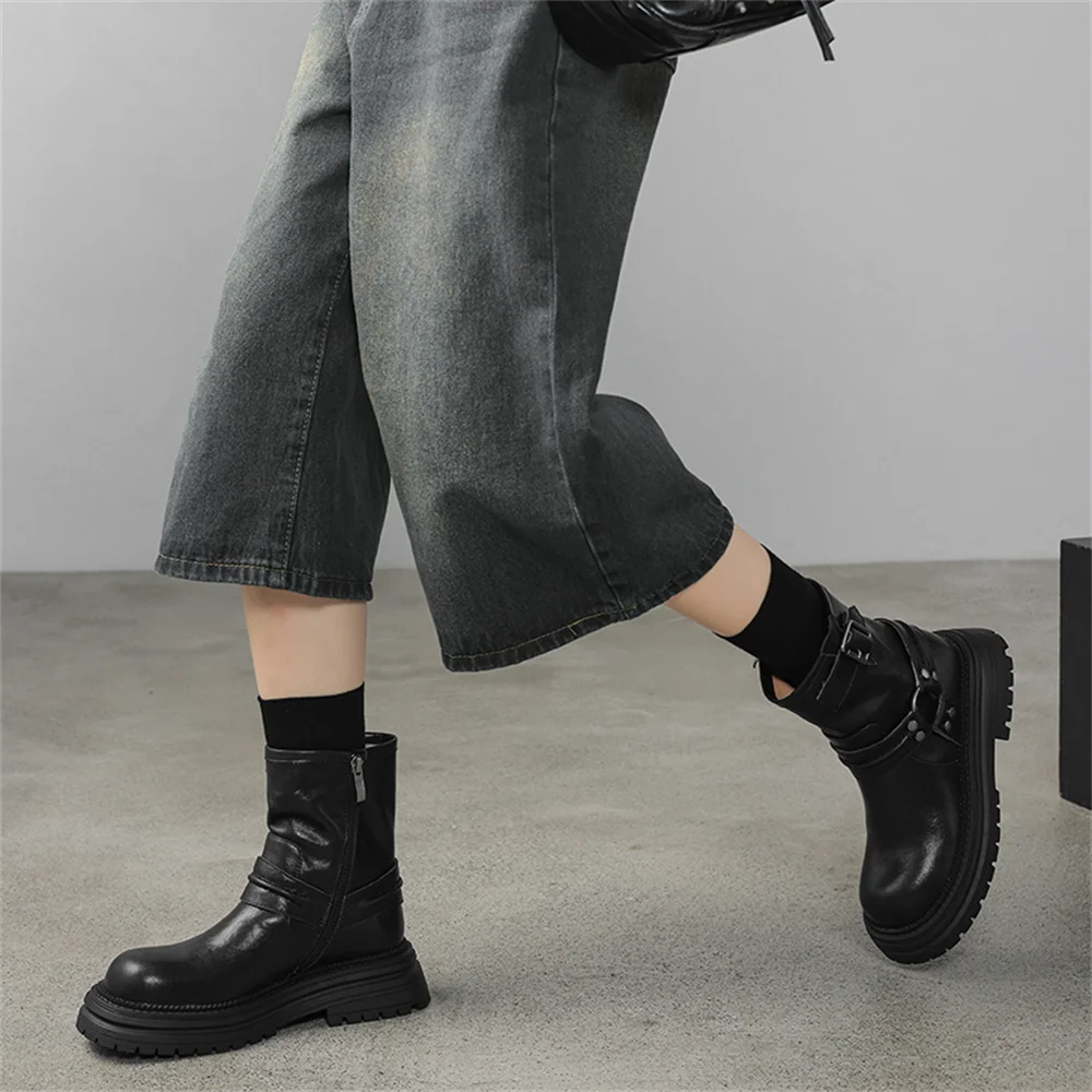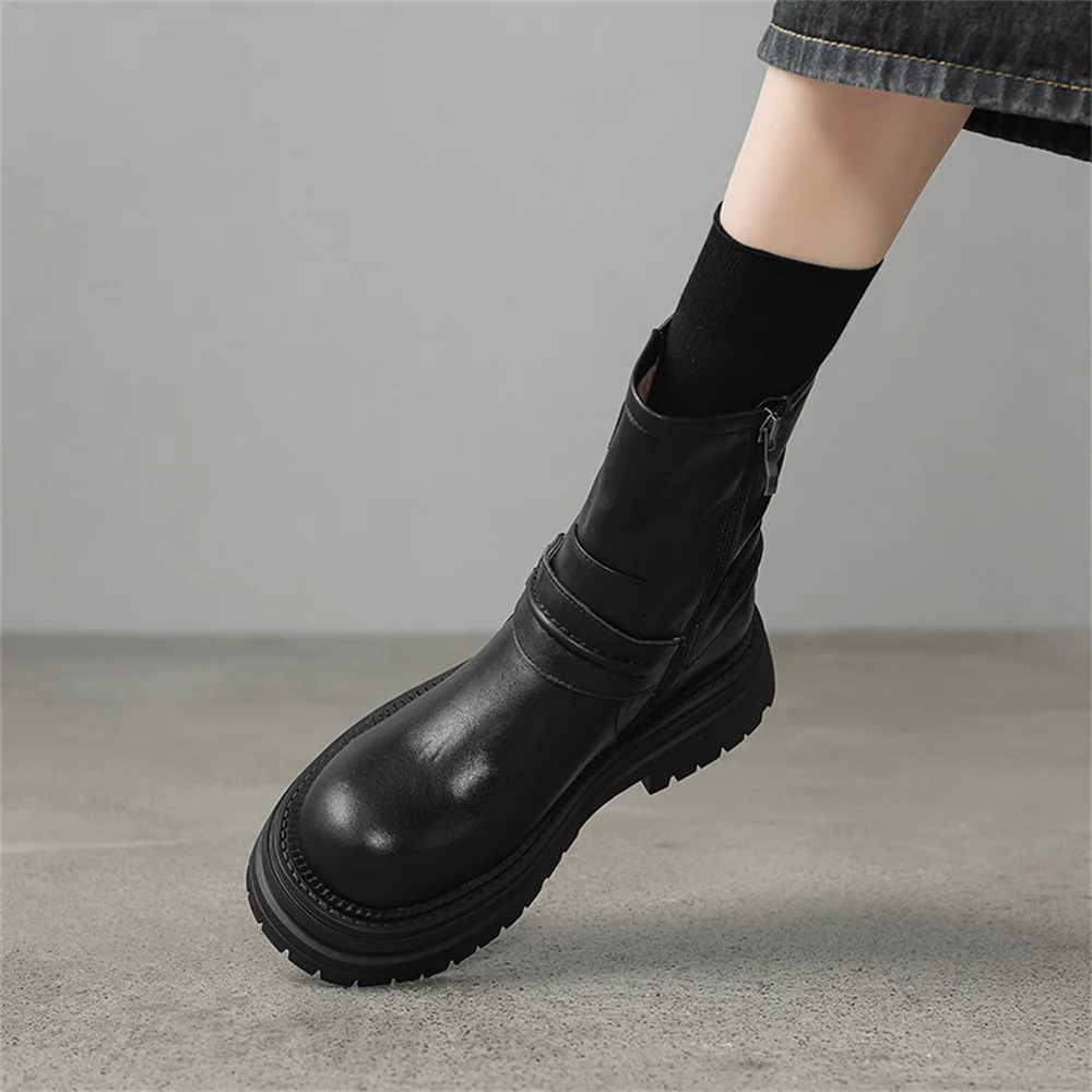 Genuine Leather Platform Ankle Boots