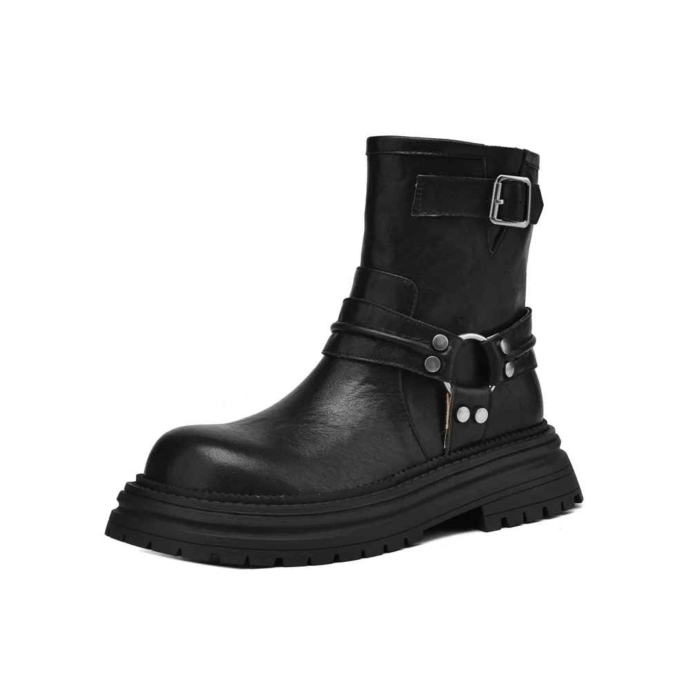Step into style and comfort with our Genuine Leather Platform Ankle Boots. Designed for the modern woman, these boots seamlessly blend sophistication with an edgy touch, making them an essential addition to your footwear collection. Crafted with high-quality materials, they are perfect for both casual outings and more formal occasions. The unique platform design not only elevates your style but also provides added comfort, ensuring that you can wear them all day long without sacrificing support.