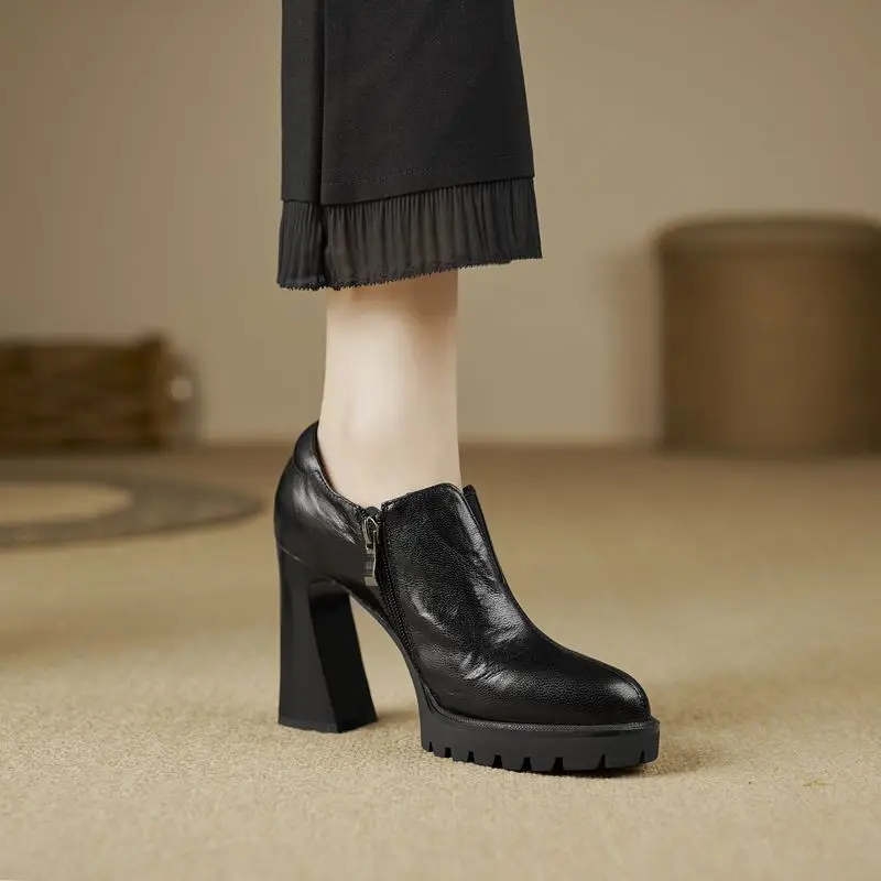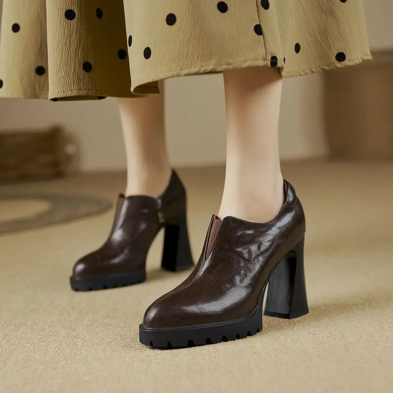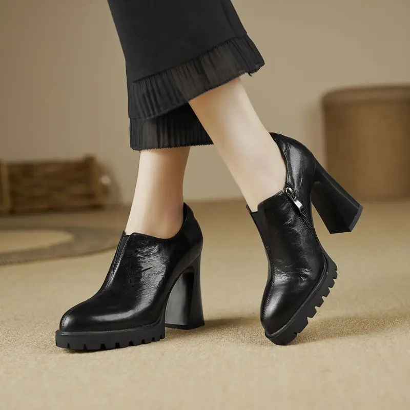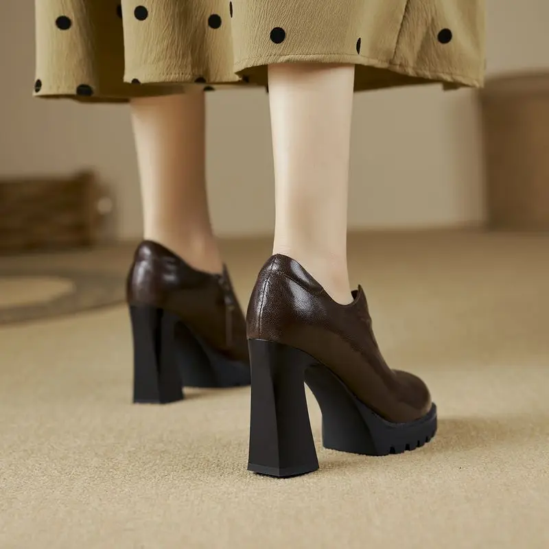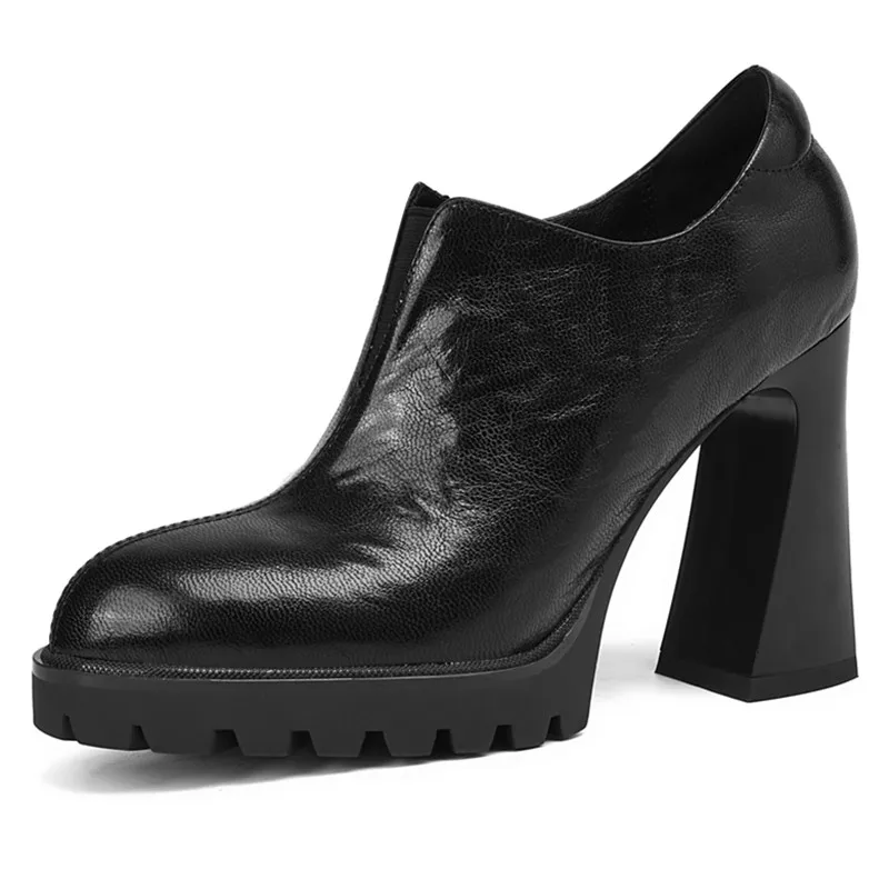Elevate Your Style with Genuine Leather Platform Chunky High Heels