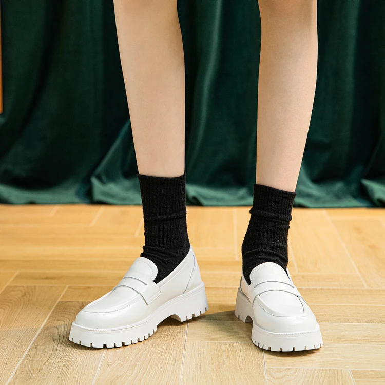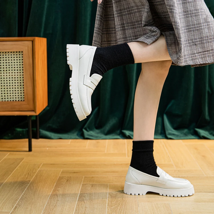 Genuine leather platform loafers fashion shoes