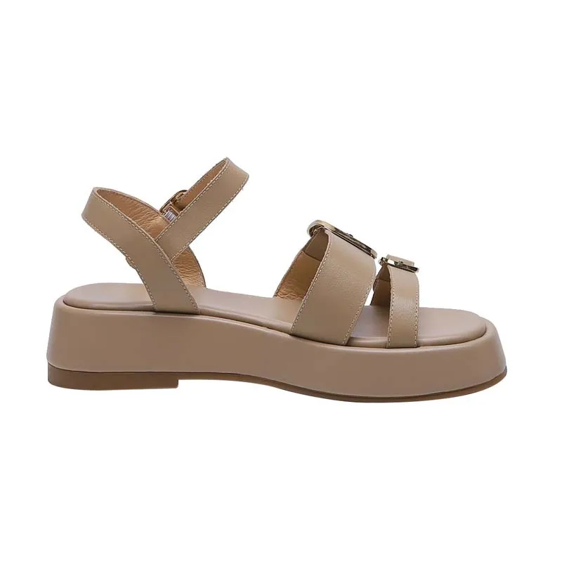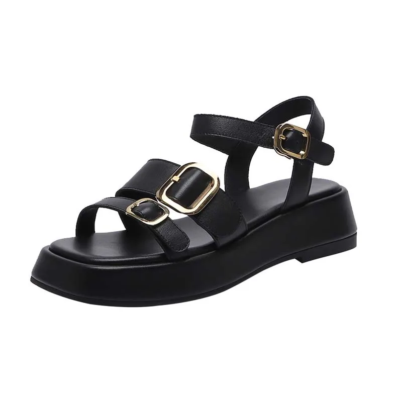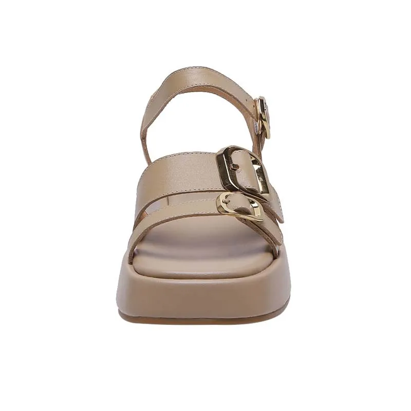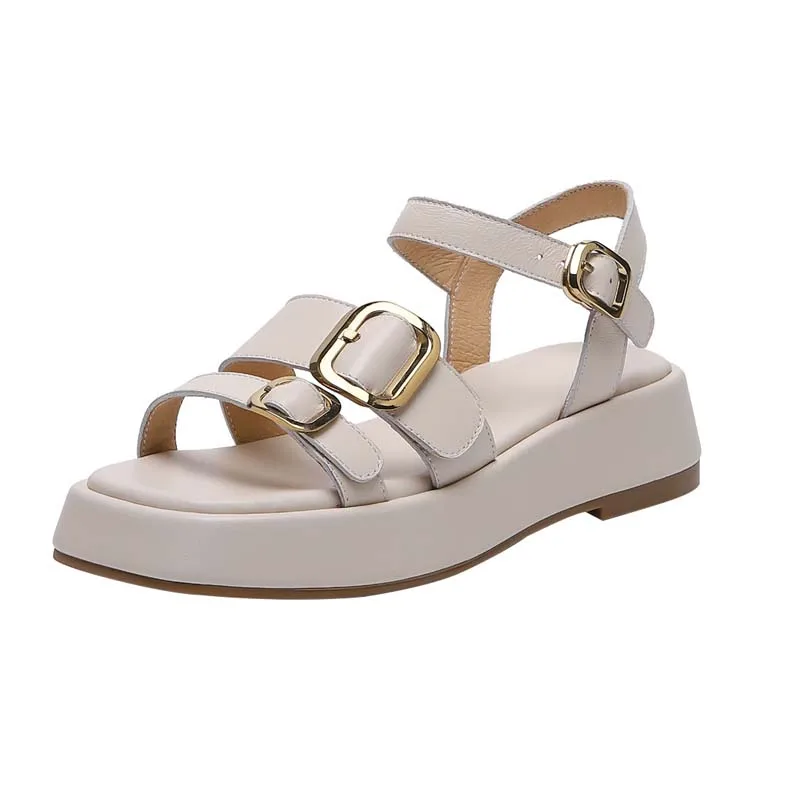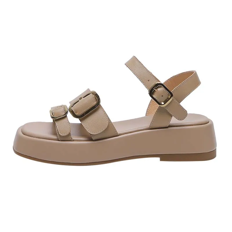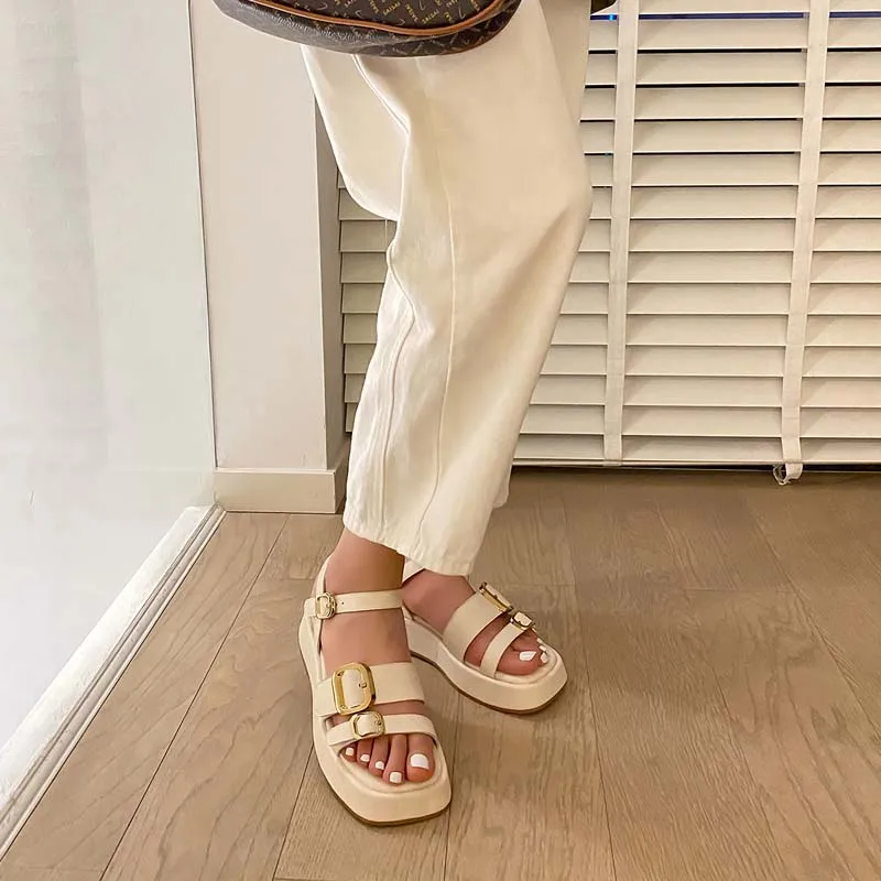 Genuine leather platform sandals with double buckle design