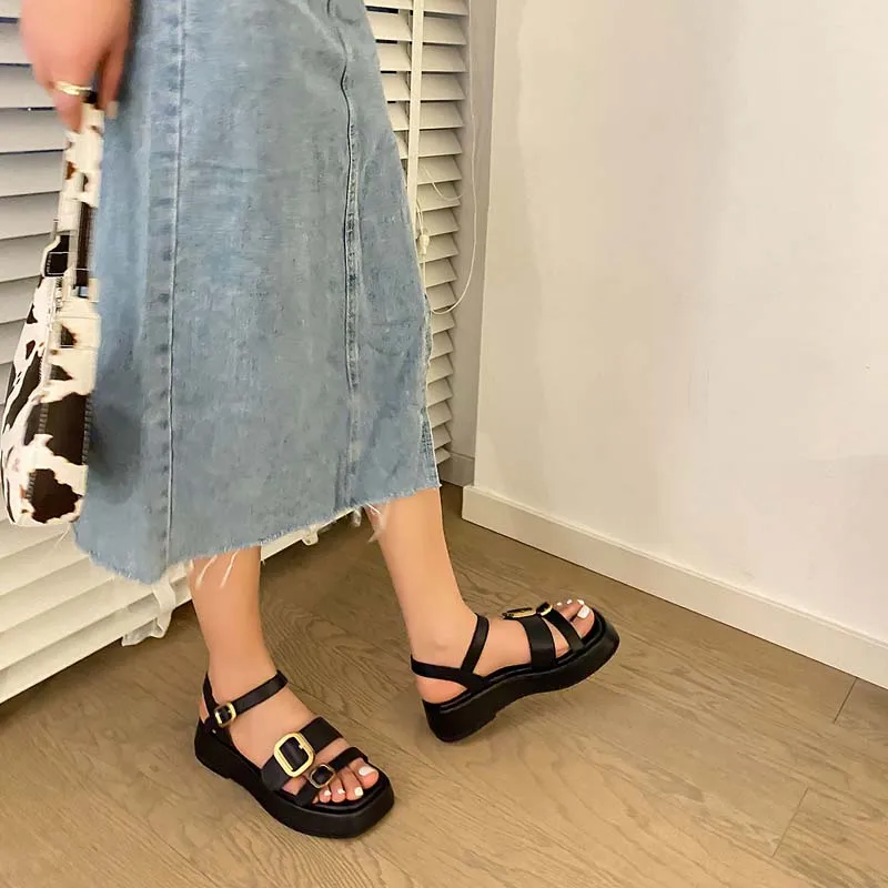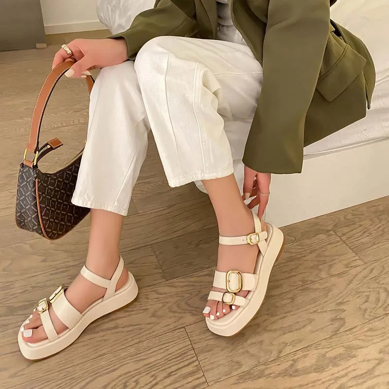 - Fashion Elements: Double Buckle, Open Toe, Platform