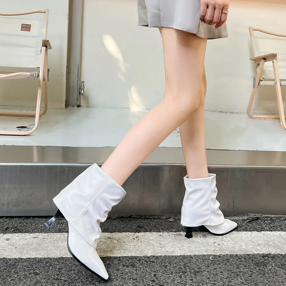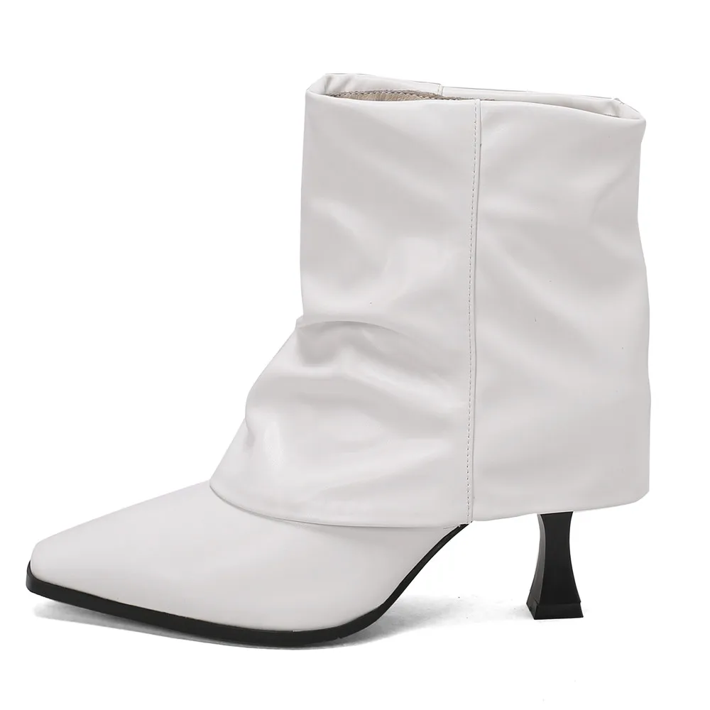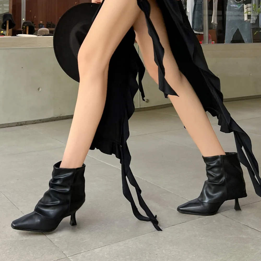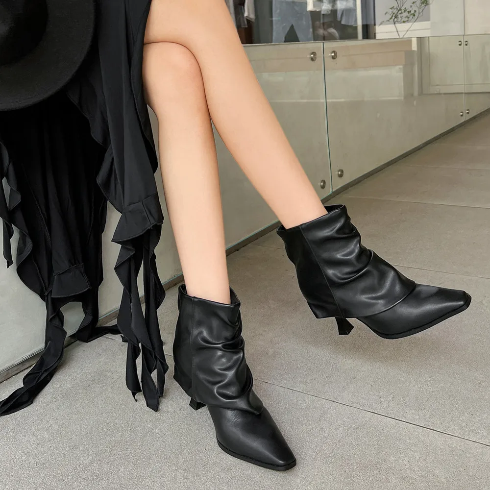 Discover the Elegance of Genuine Leather Pleated Ankle Boots with High Heels