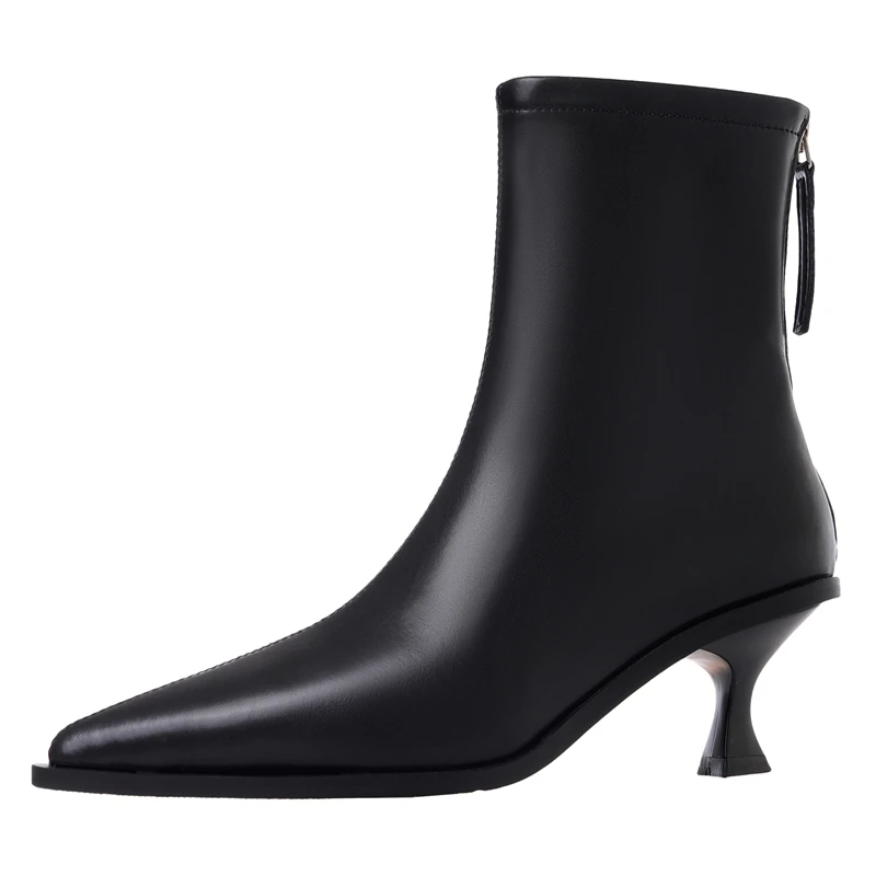 Genuine leather pointed toe ankle boots with zipper high heels