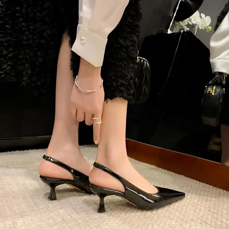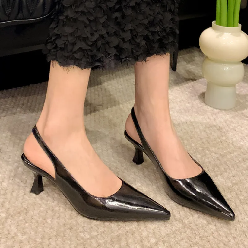 Elevate Your Style with Genuine Leather Pointed Toe High Heels Slingback Sandals