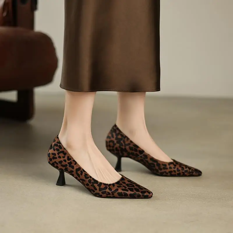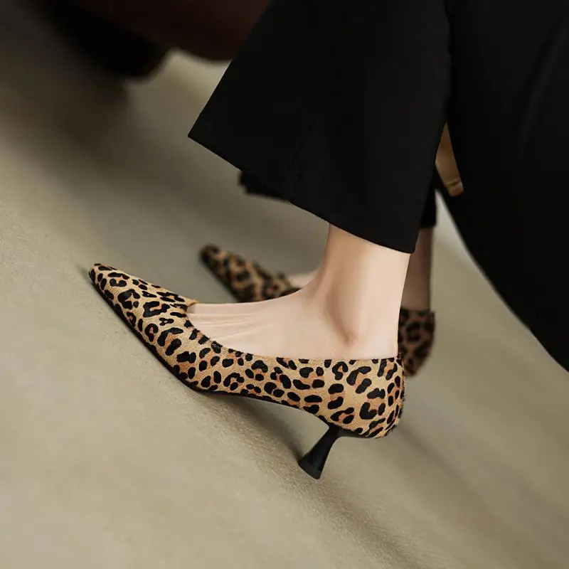 Step Up Your Style with the Genuine Leather Pointed Toe Leopard Party Shoes