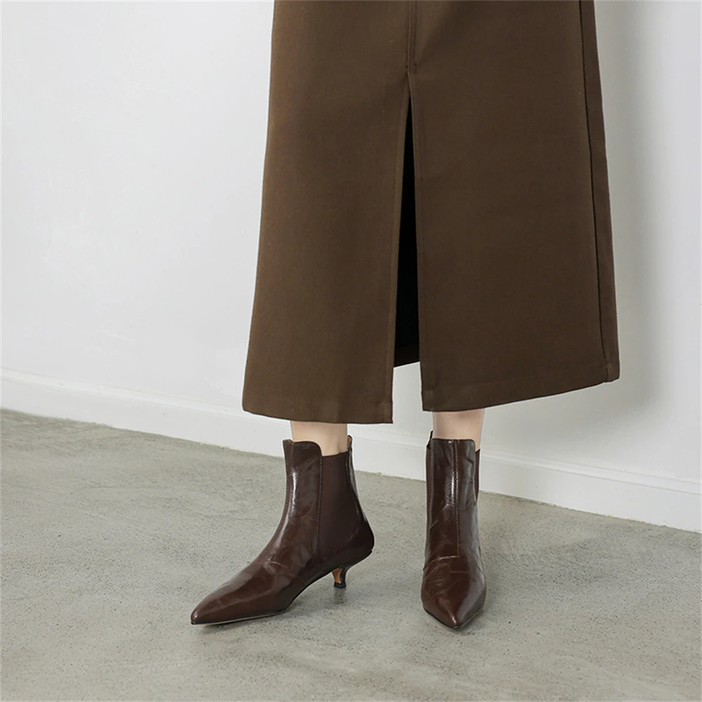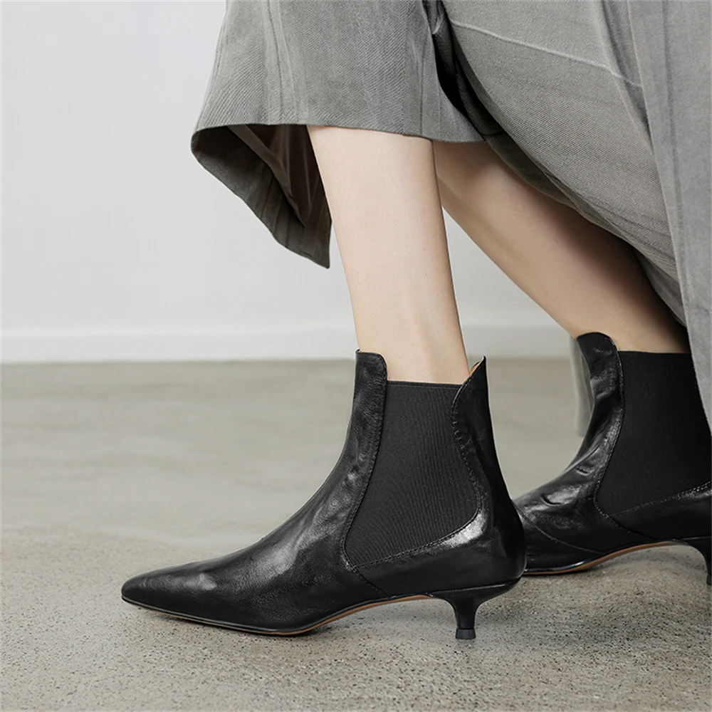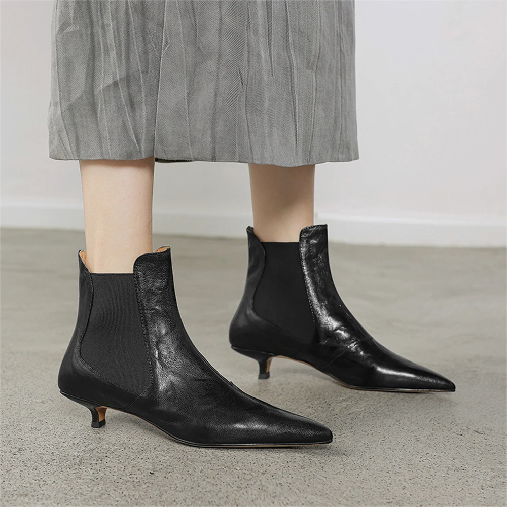 Elevate your footwear collection with these stunning Genuine Leather Pointed Toe Low Heel Boots. Designed for the modern woman, these boots combine style, comfort, and versatility, making them the perfect addition to any wardrobe. Crafted from high-quality genuine sheepskin leather, they provide a luxurious feel while ensuring durability and longevity. With their pointed toe and thin heel, these boots are ideal for both casual outings and elegant occasions.